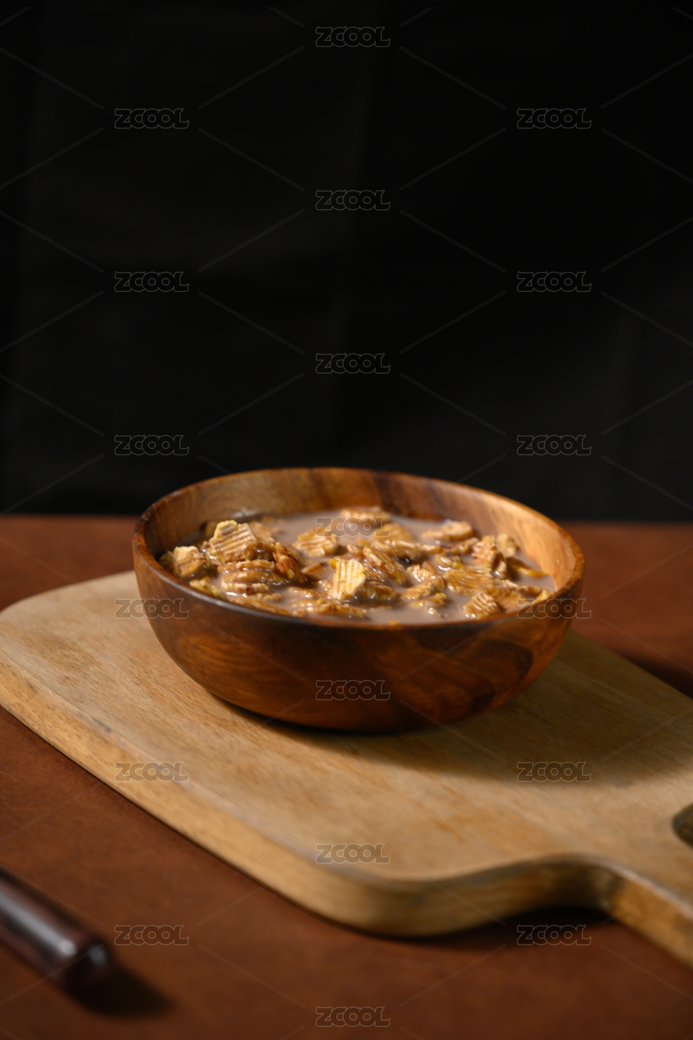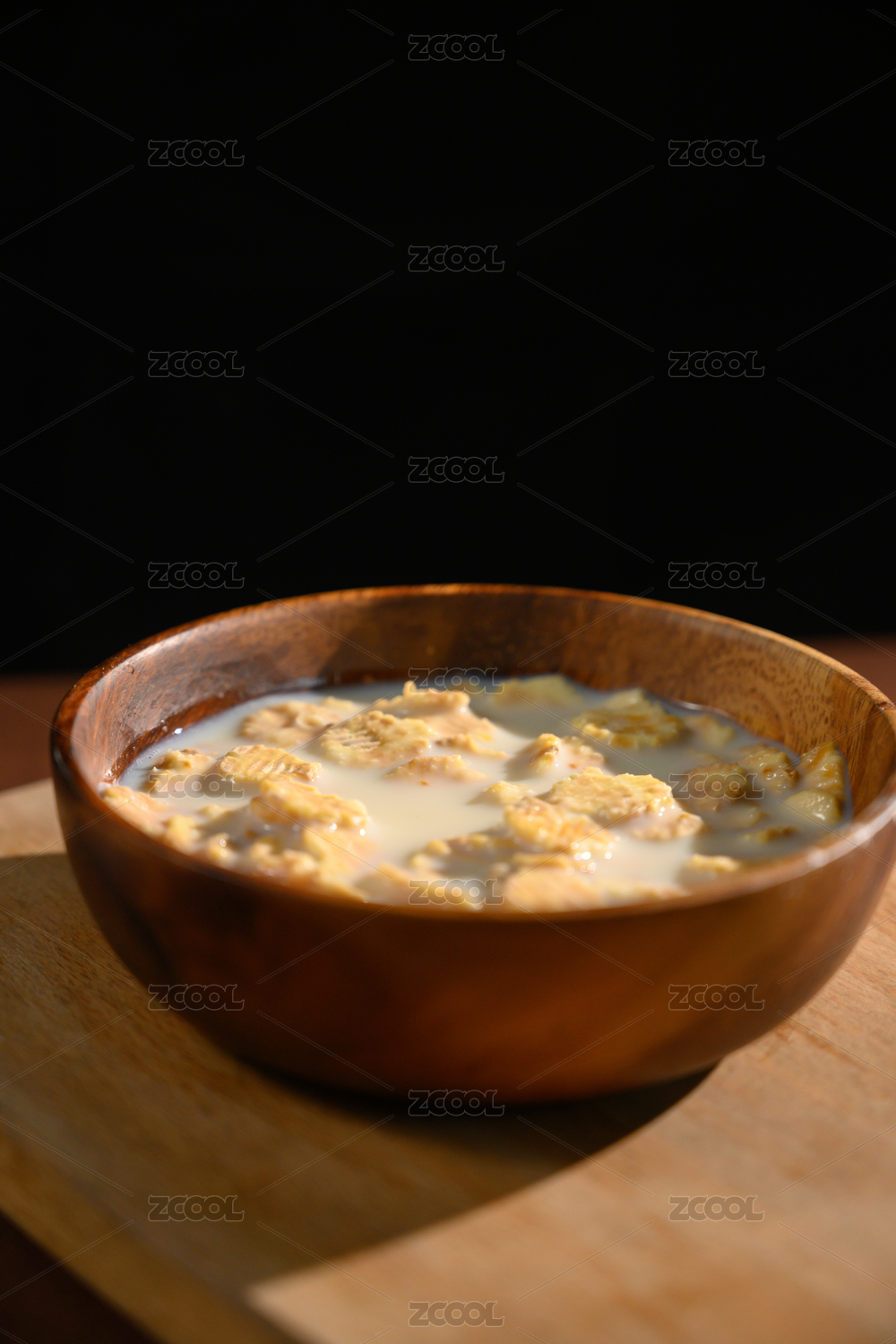 桌面上的碗里的美味可口的牛奶青稞米花
