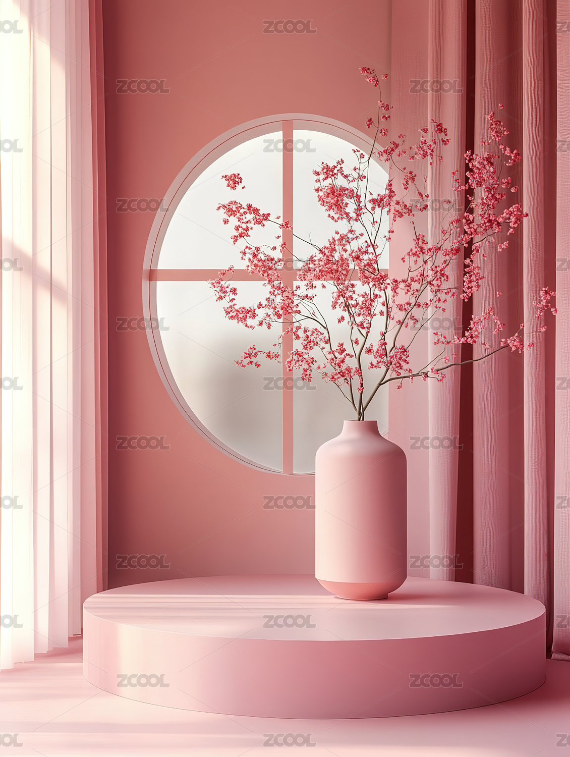 放在桌子上的粉色樱花