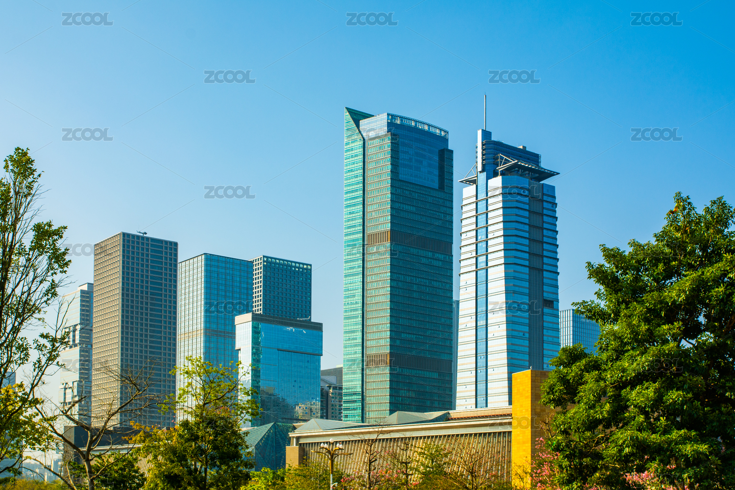晴天的广州市中心天河区金融中心摩天大厦建筑群