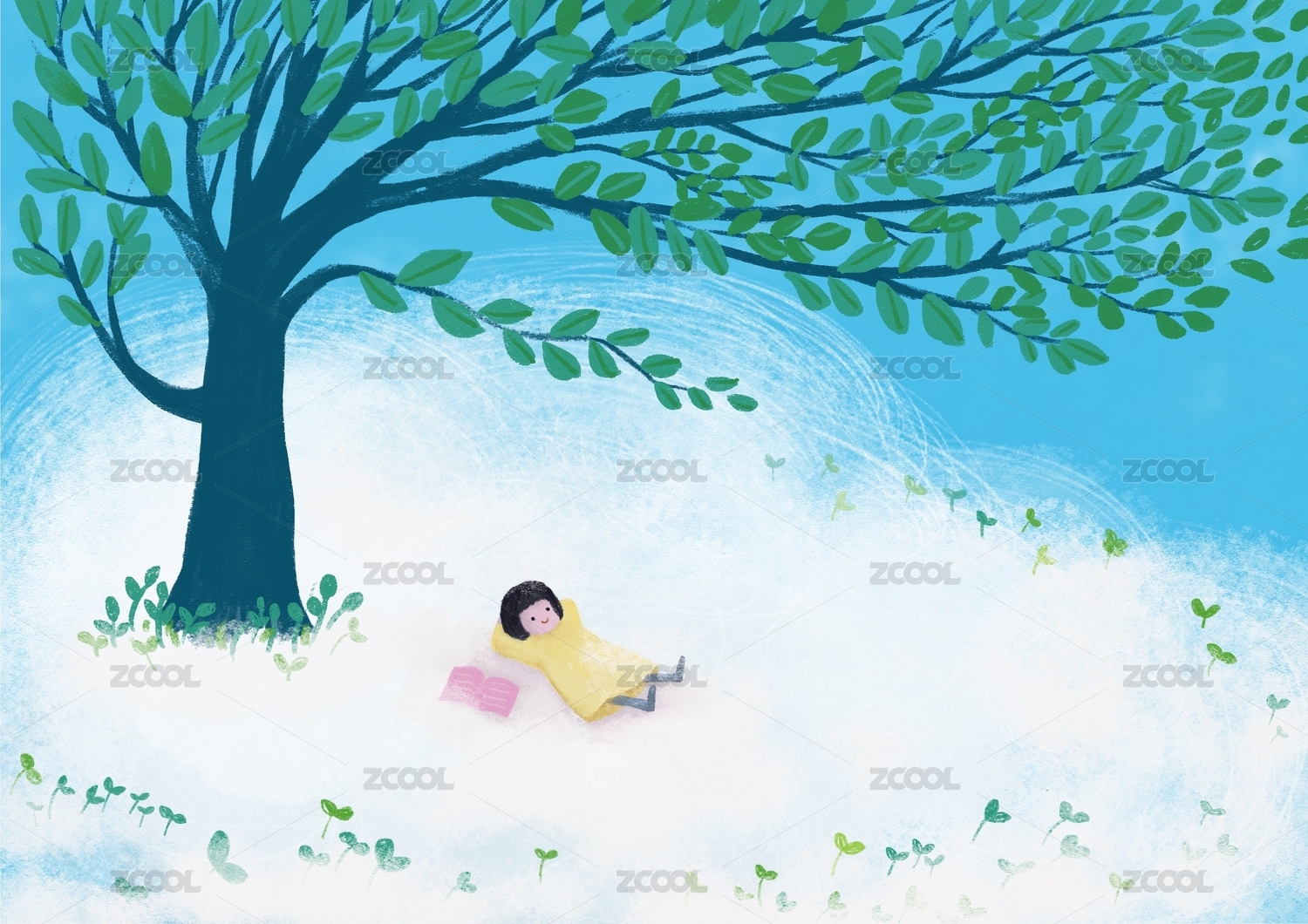 大树,奔跑,天空,女孩,女的,树叶,落叶,奋斗,阳光,草