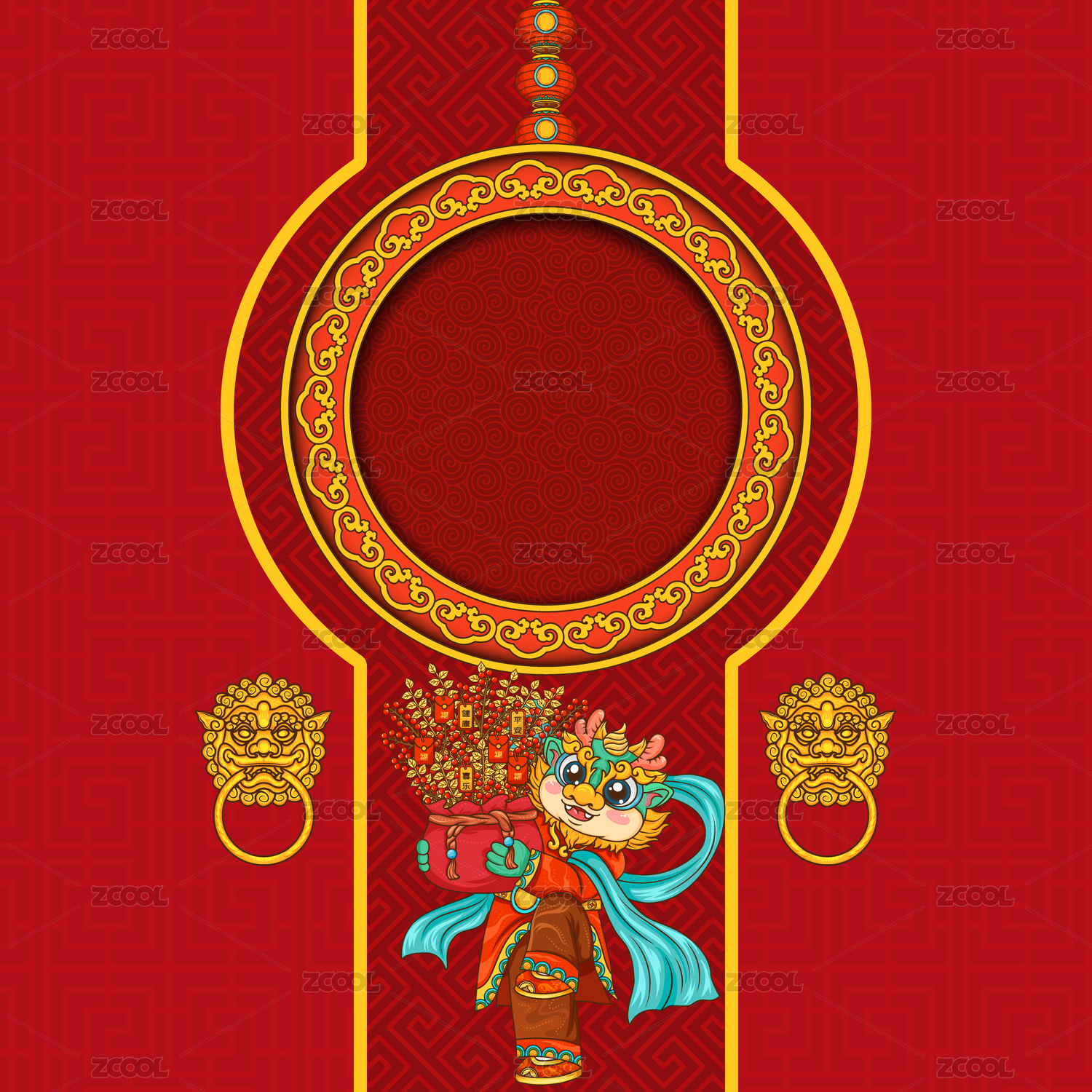 矢量龙年生肖新年春节开门大吉拜年封面背景