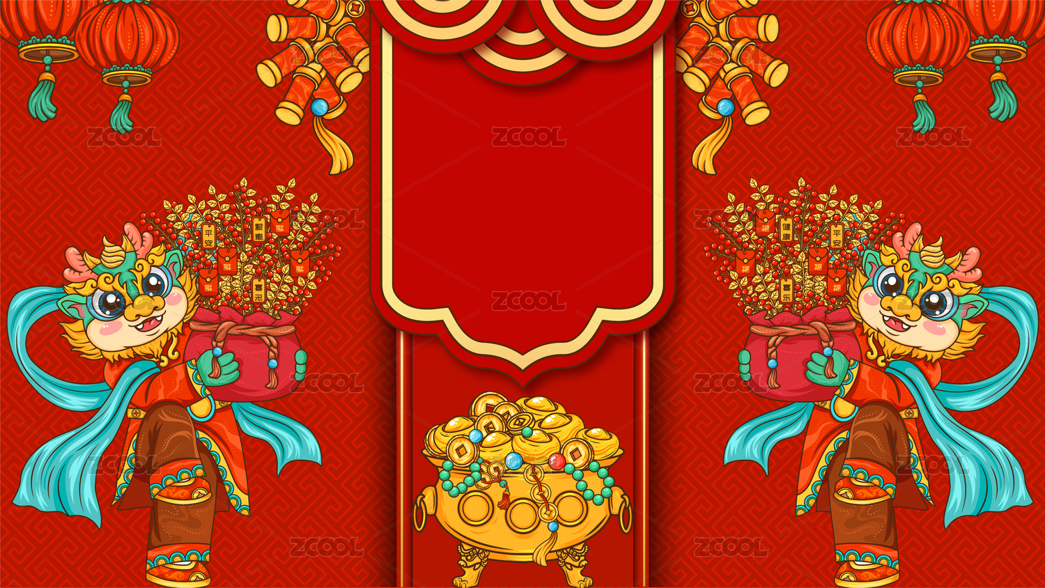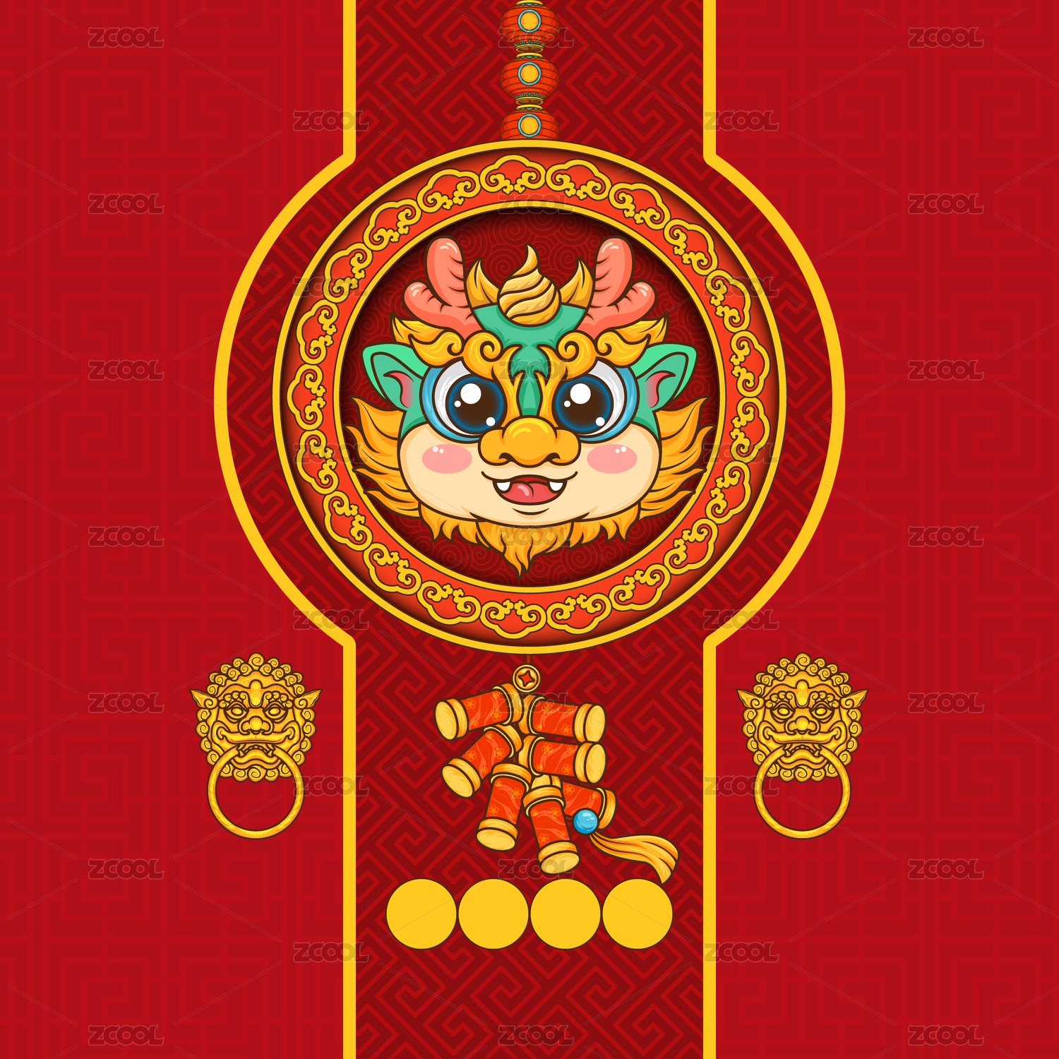 矢量龙年十二生肖新年春节龙头拜年封面背景