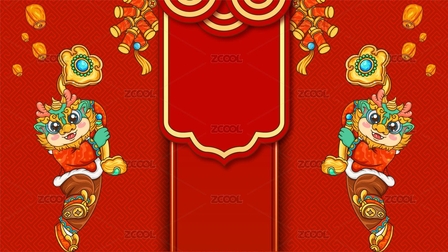 矢量龙年十二生肖新年春节小龙拜年封面背景