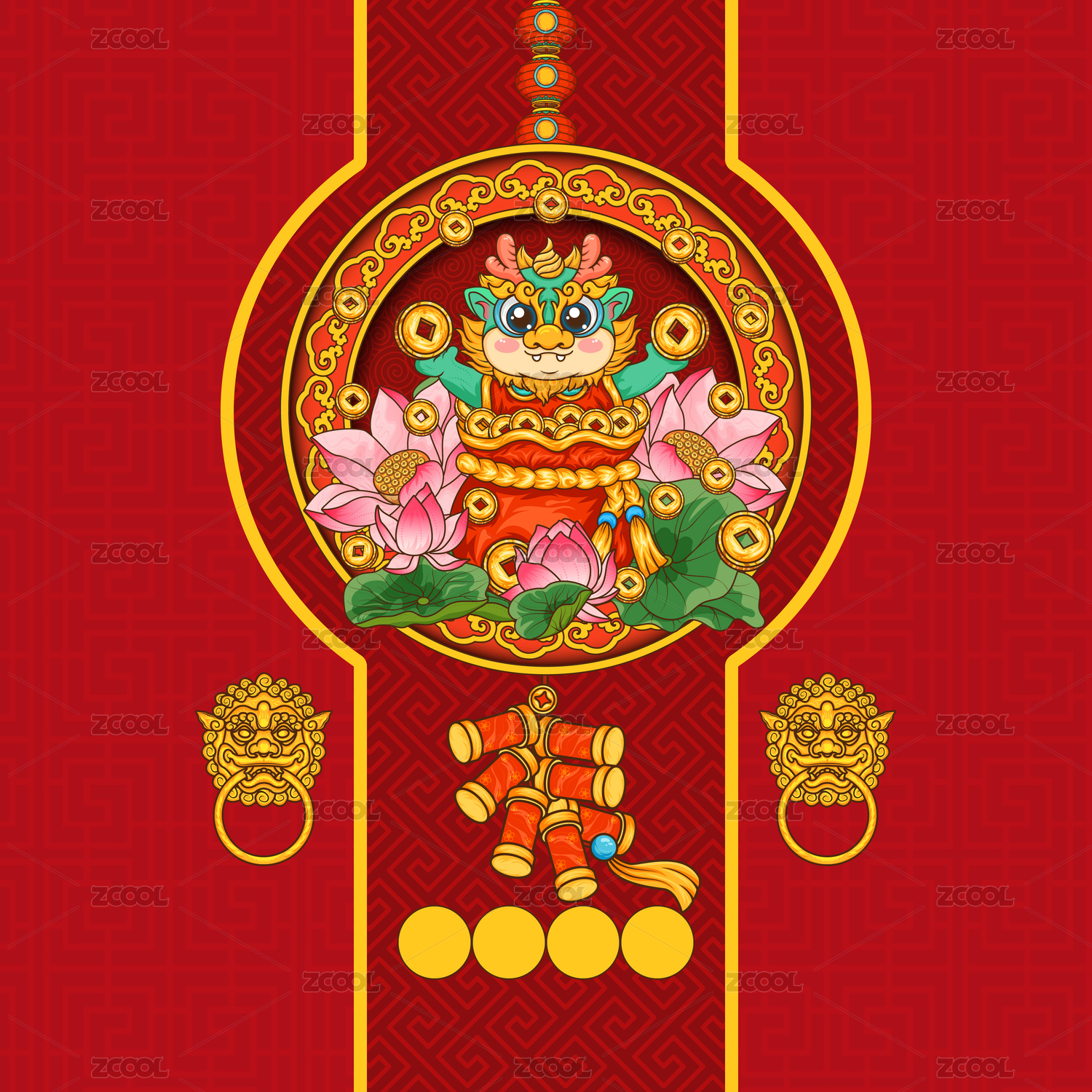 矢量龙年生肖元旦春节新年福袋拜年封面背景