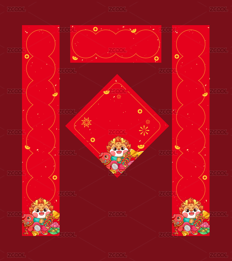 亚洲中国龙年矢量吉祥如意拜年红色背景边框