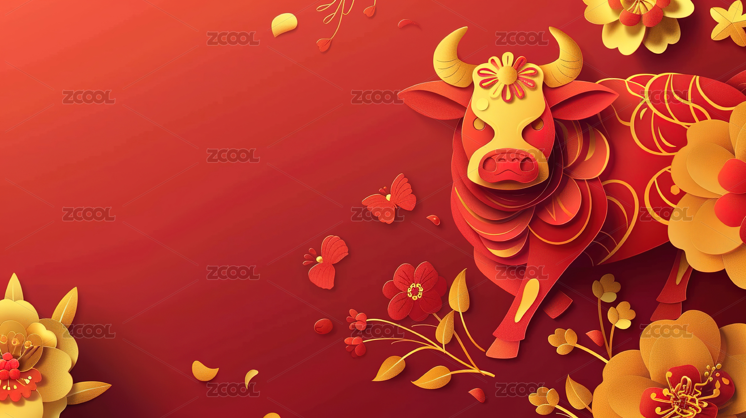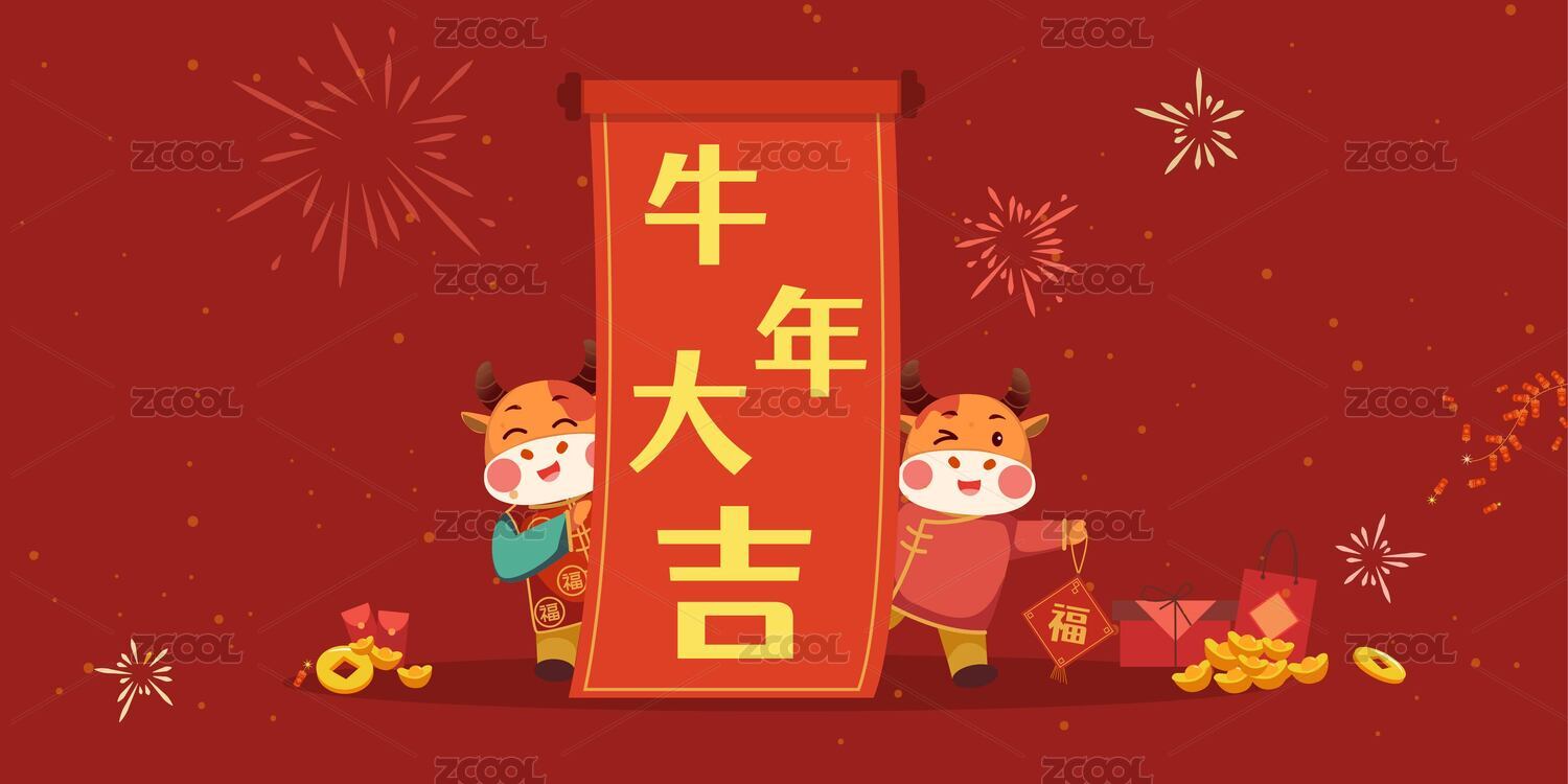 国潮牛年可爱牛牛IP形象矢量插画背景