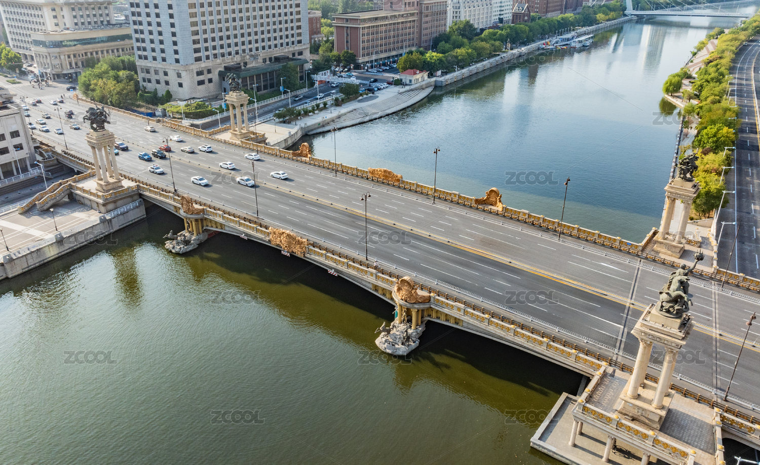 航拍天津海河大沽桥