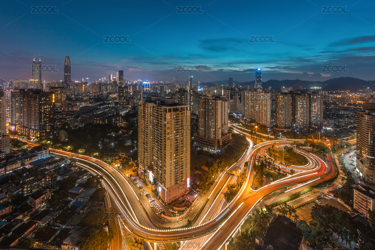 中国深圳市深圳城市风光罗湖片区傍晚时分