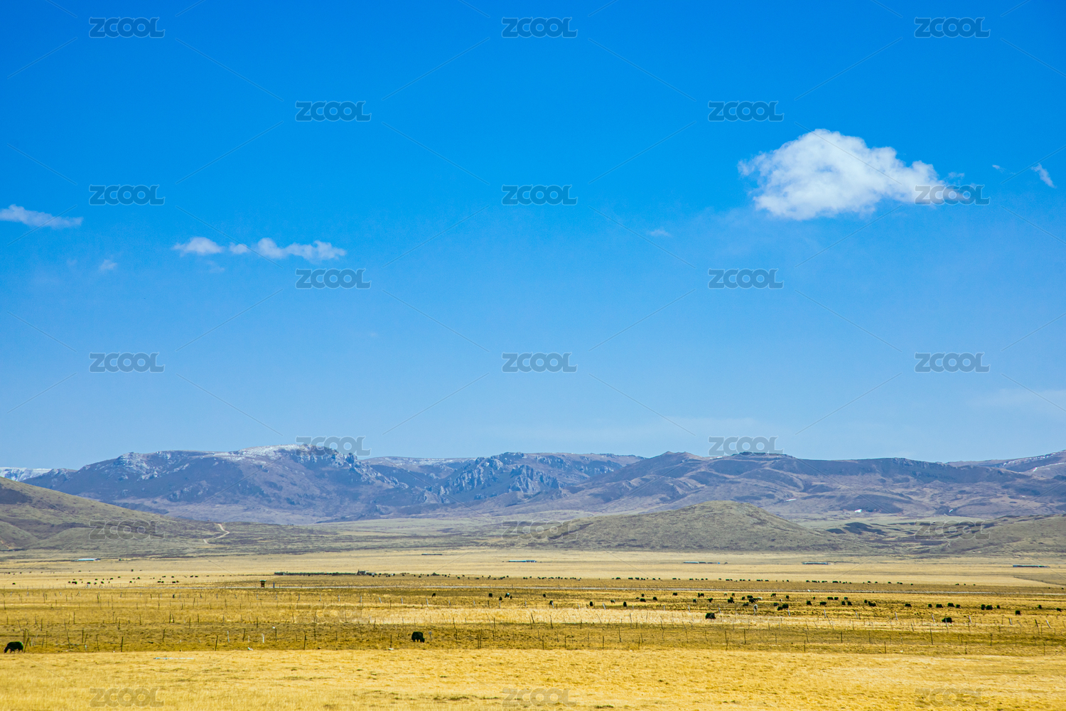 四川省阿坝州-蓝天下的高山和草原风景