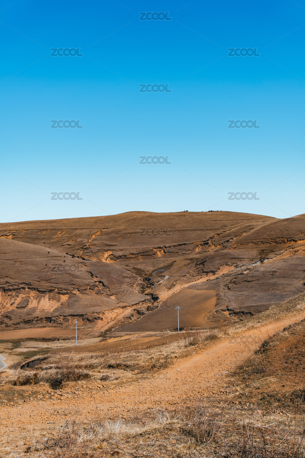 新疆独子山库车公路旁戈壁山丘电塔