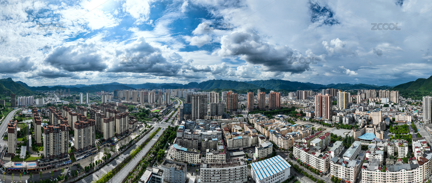 中国四川省万源市主城区高楼大厦建筑