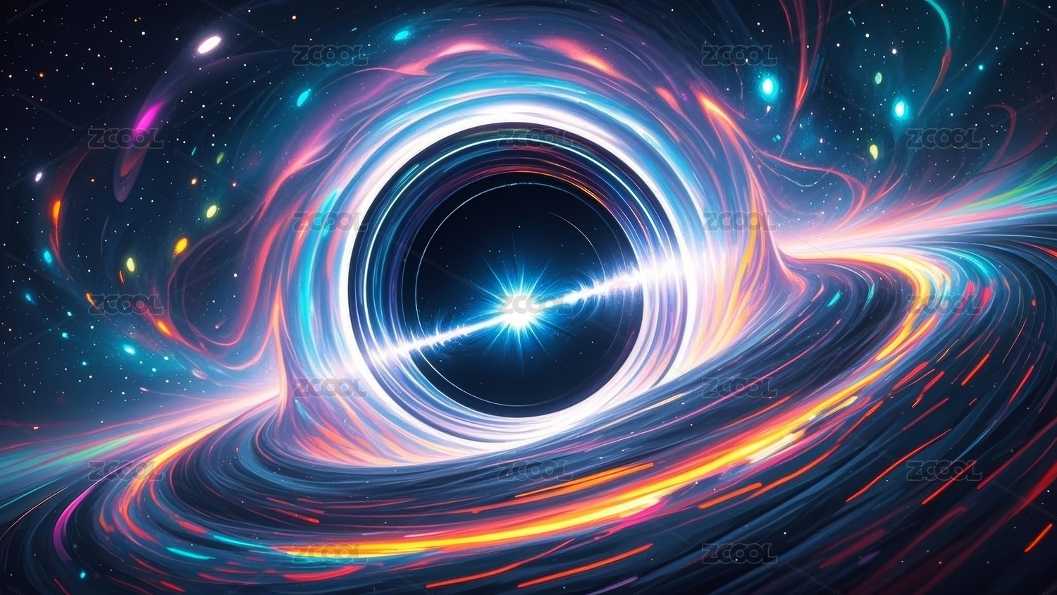 数字星系多彩黑洞场景抽象图形海报网页