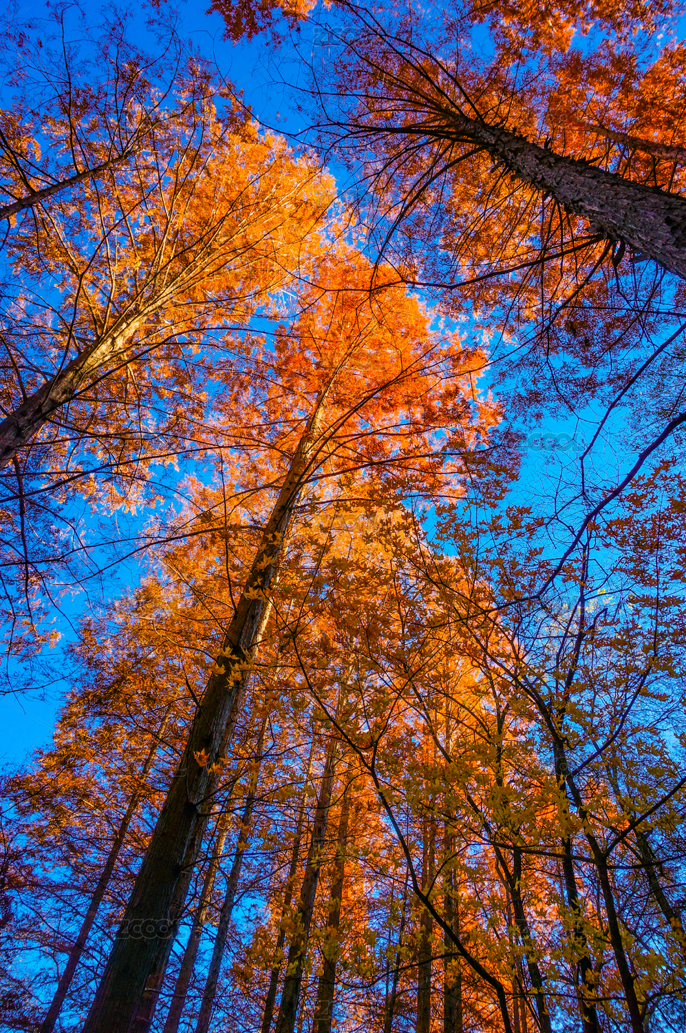 中国湖北省恩施州秋天公路上的黄色水杉树树叶美