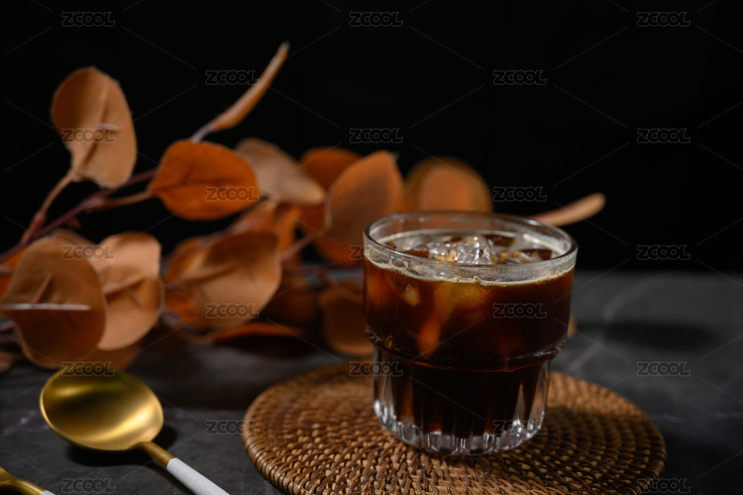 桌面上的玻璃杯里的香气四溢的桂花美式