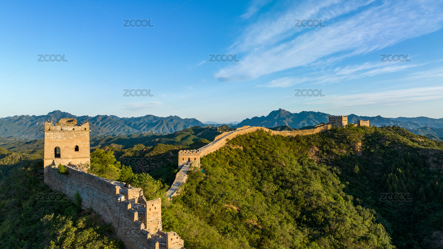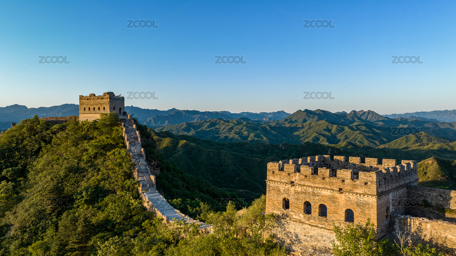 夕阳下的金色长城 中国河北金山岭长城航拍