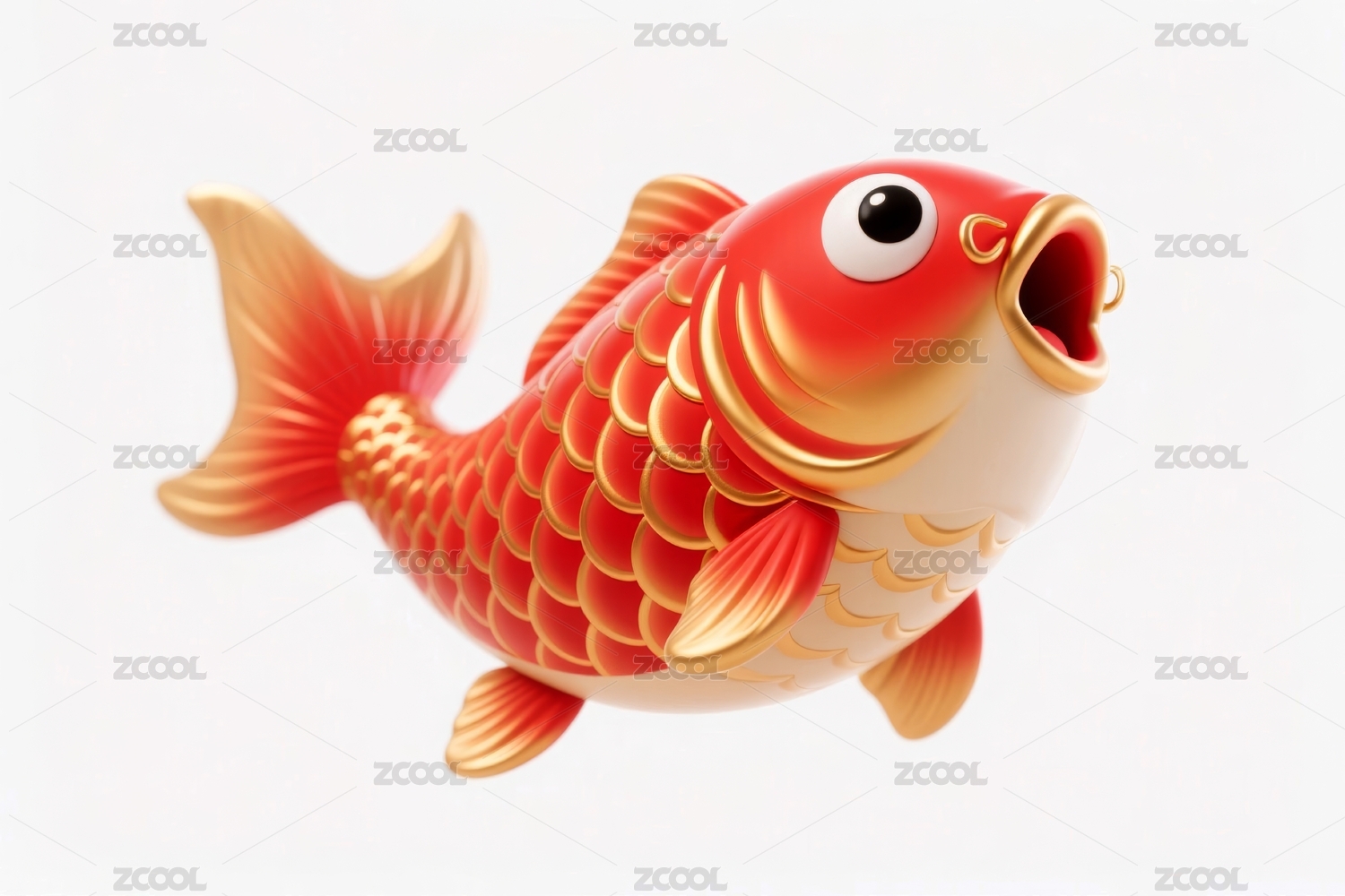 可爱锦鲤3d形象新年跳跃鲤鱼国风三维插画