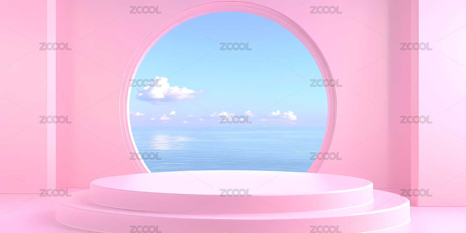 粉色拱门和3D圆形展台
