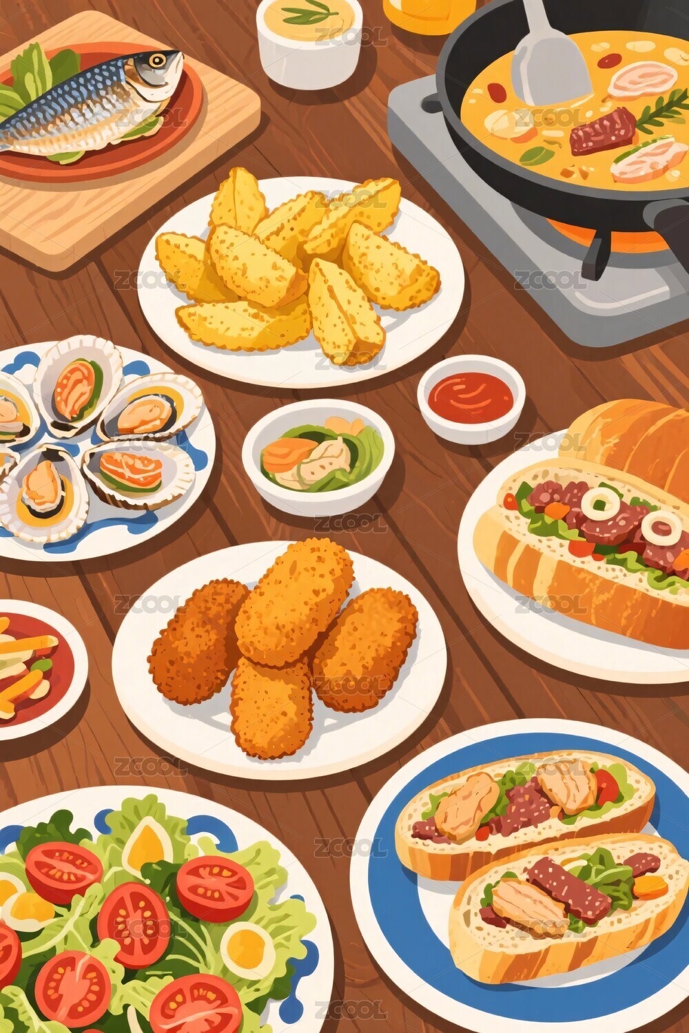 健康早餐美味小吃节日文化午餐晚餐美食插画