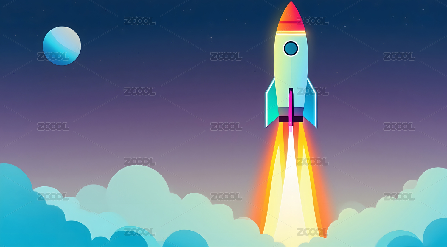 卡通火箭升空与云层