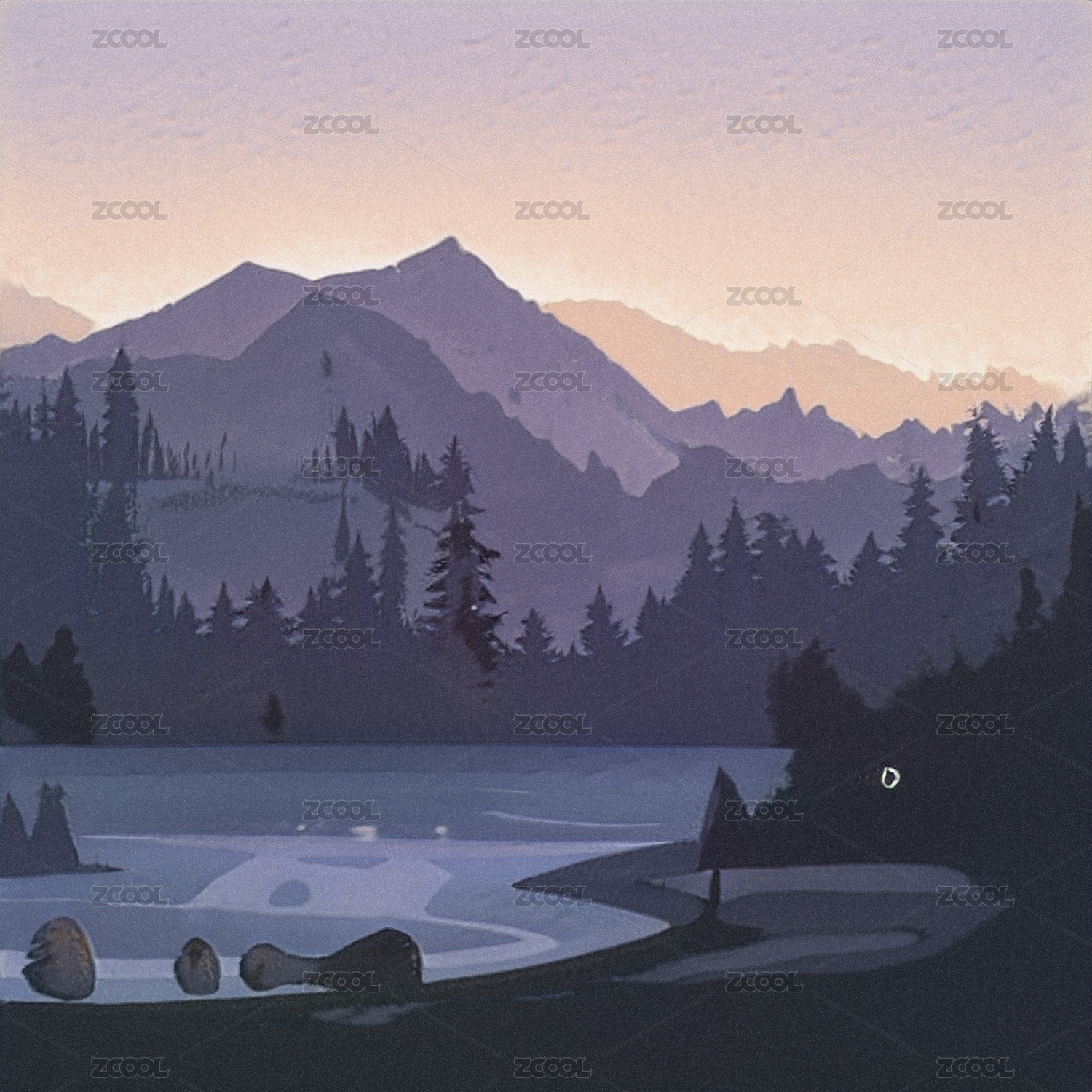 插画,风光,自然,写实,天空,山脉,河流,河,大海,海洋
