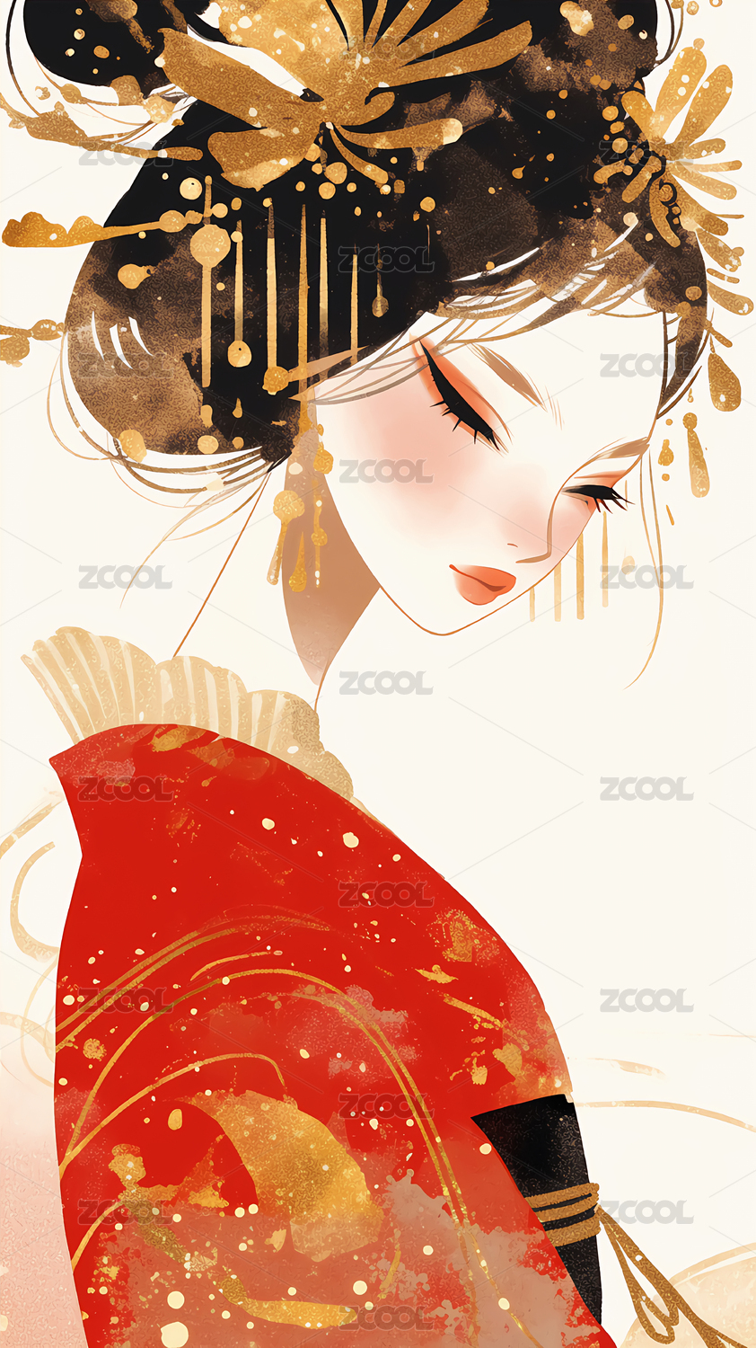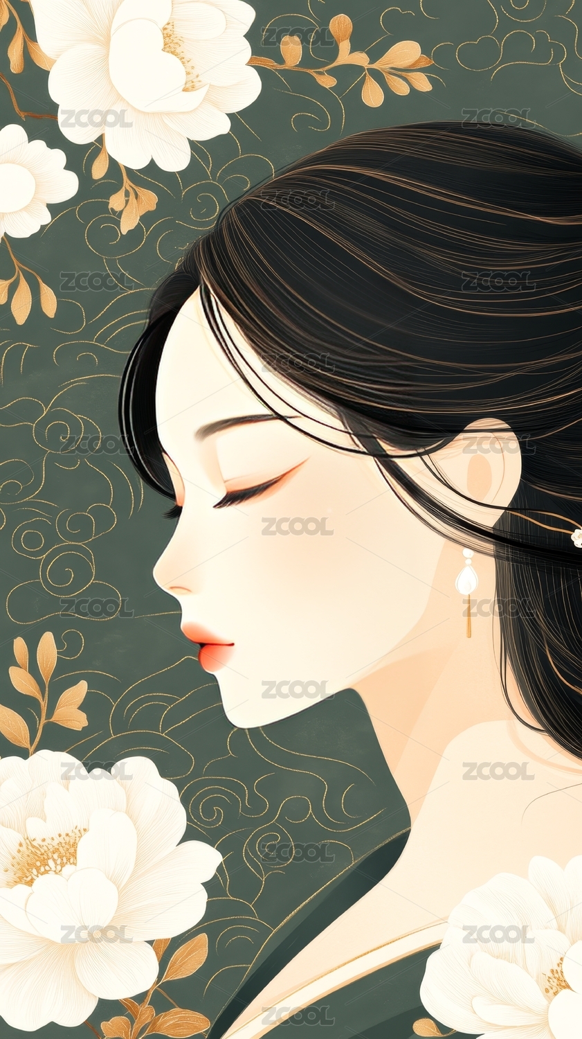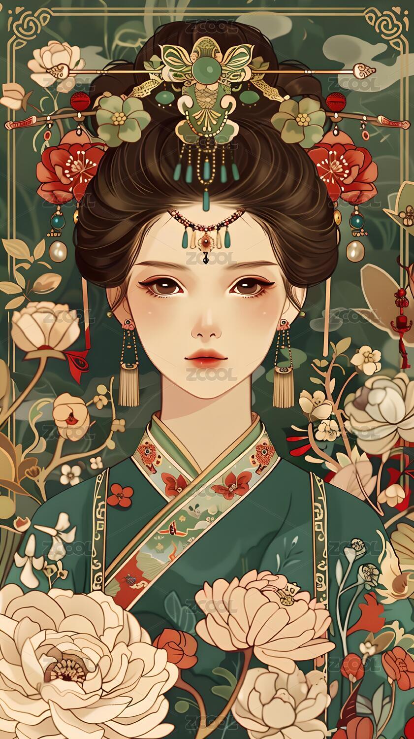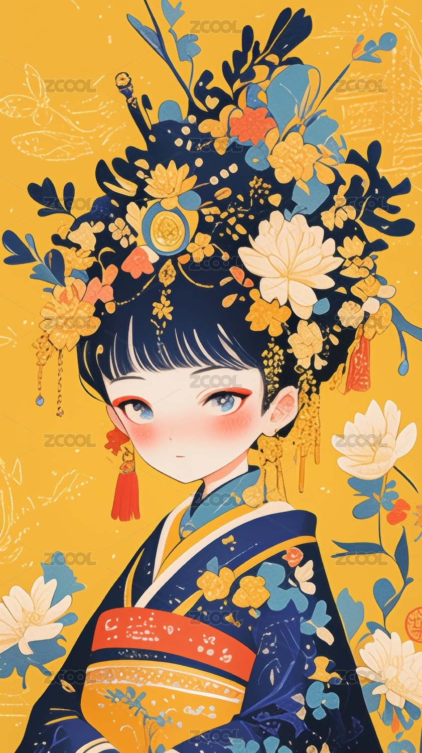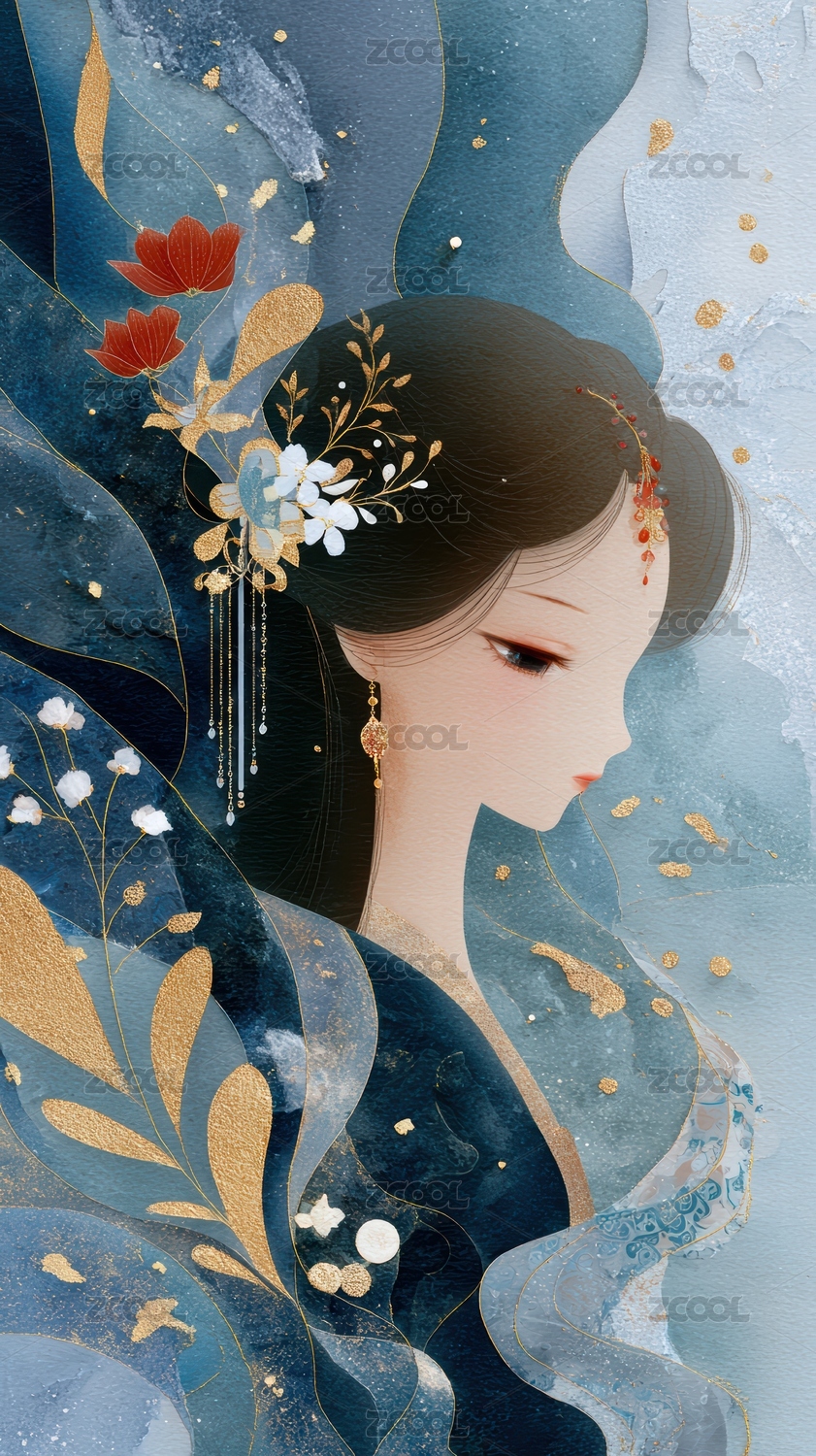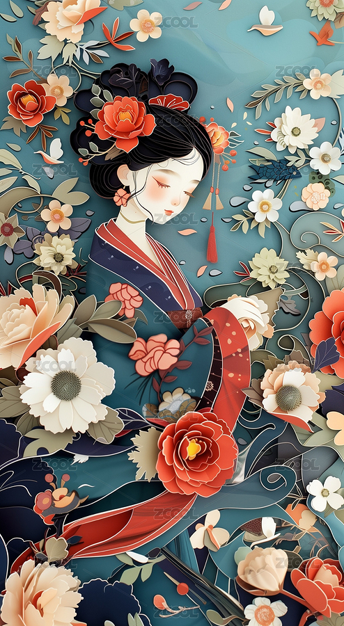 剪纸,衍纸,汉服,传统,国风,少女,发髻,发簪,鲜花