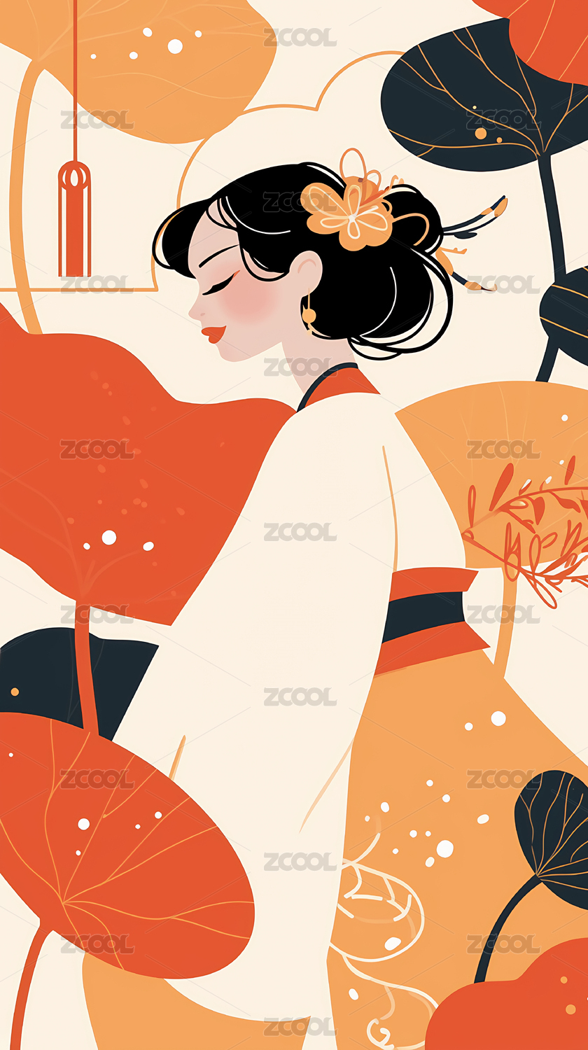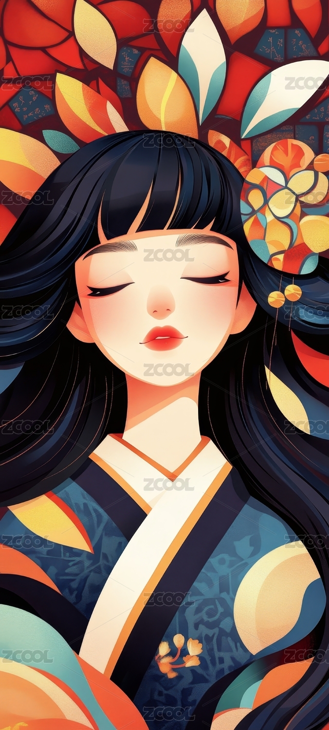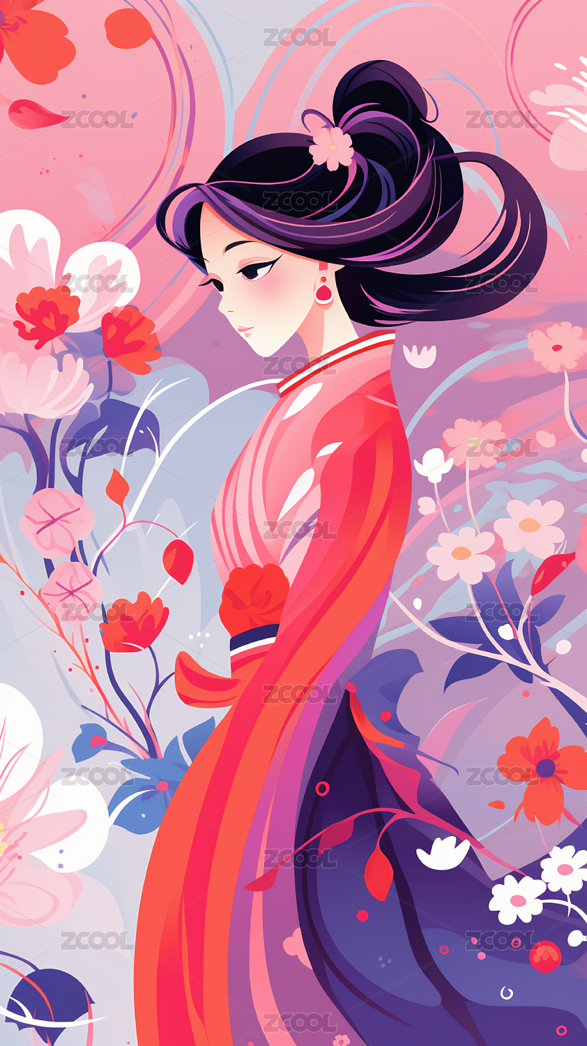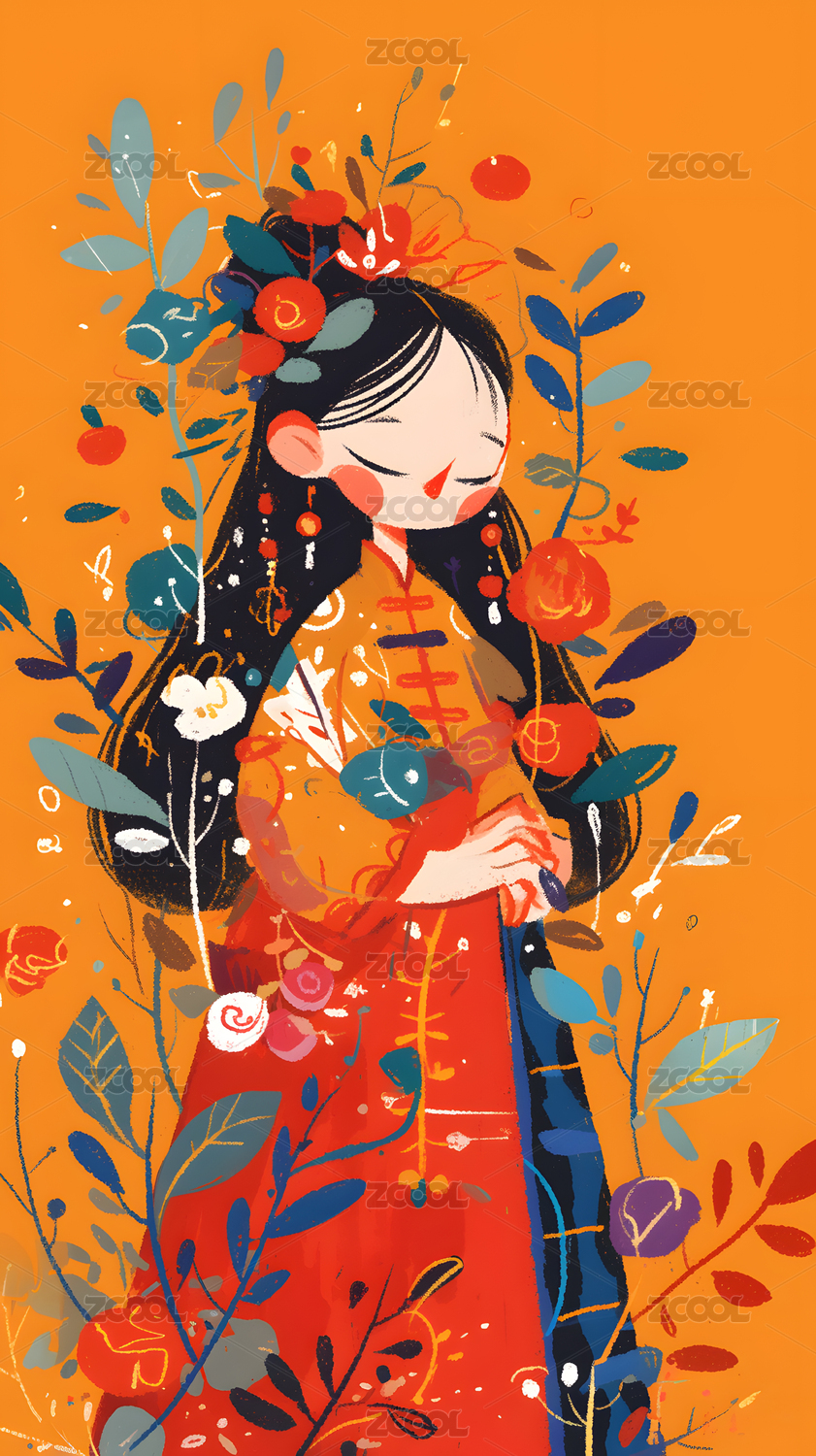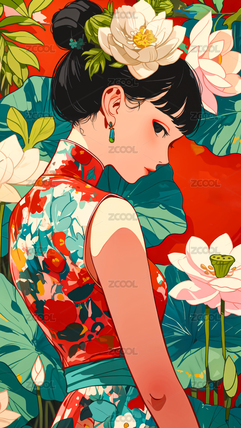剪纸,衍纸,汉服,传统,国风,少女,发髻,发簪,鲜花