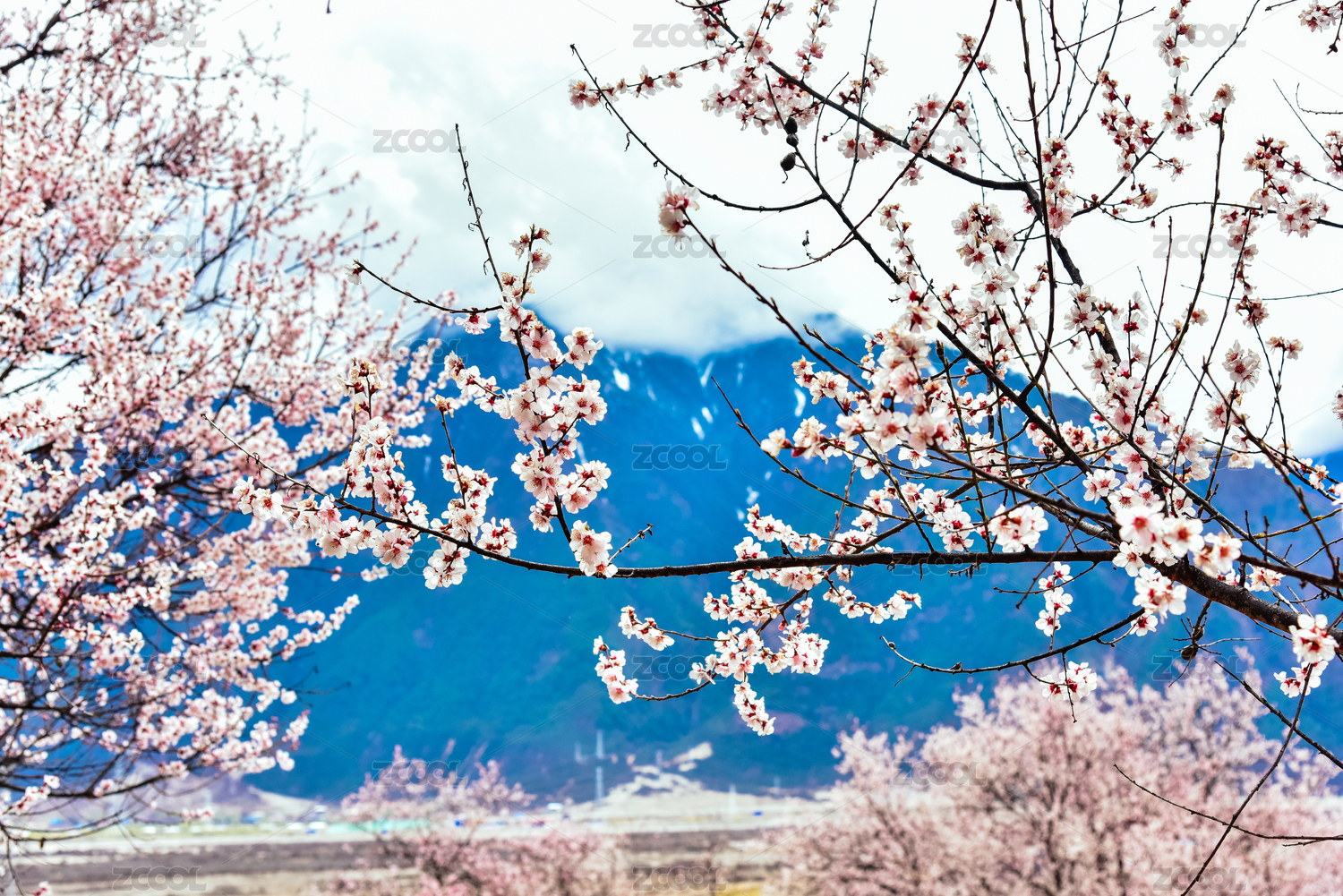 中国西藏林芝雪山下的桃花