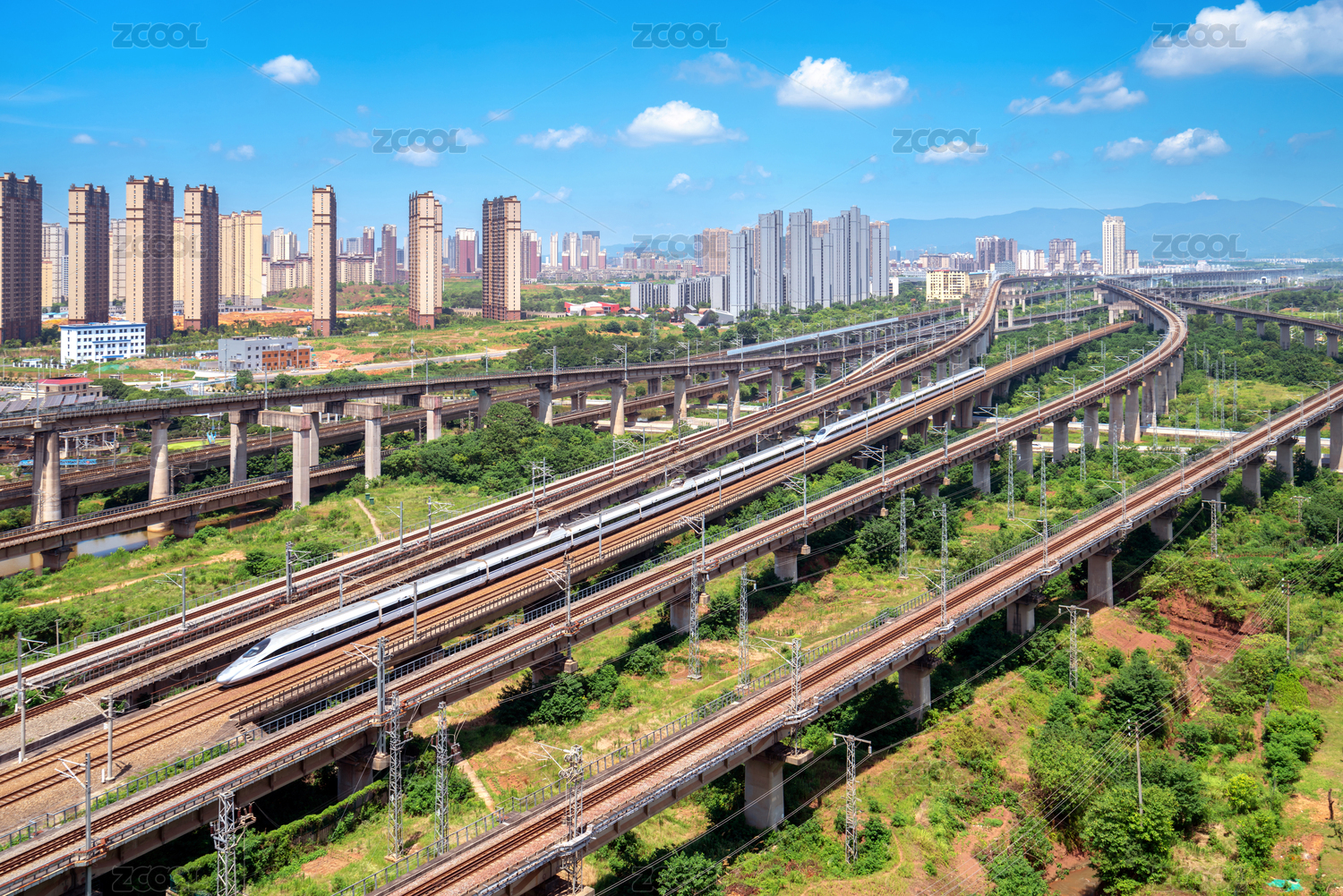和谐号高铁在城市中高速行驶