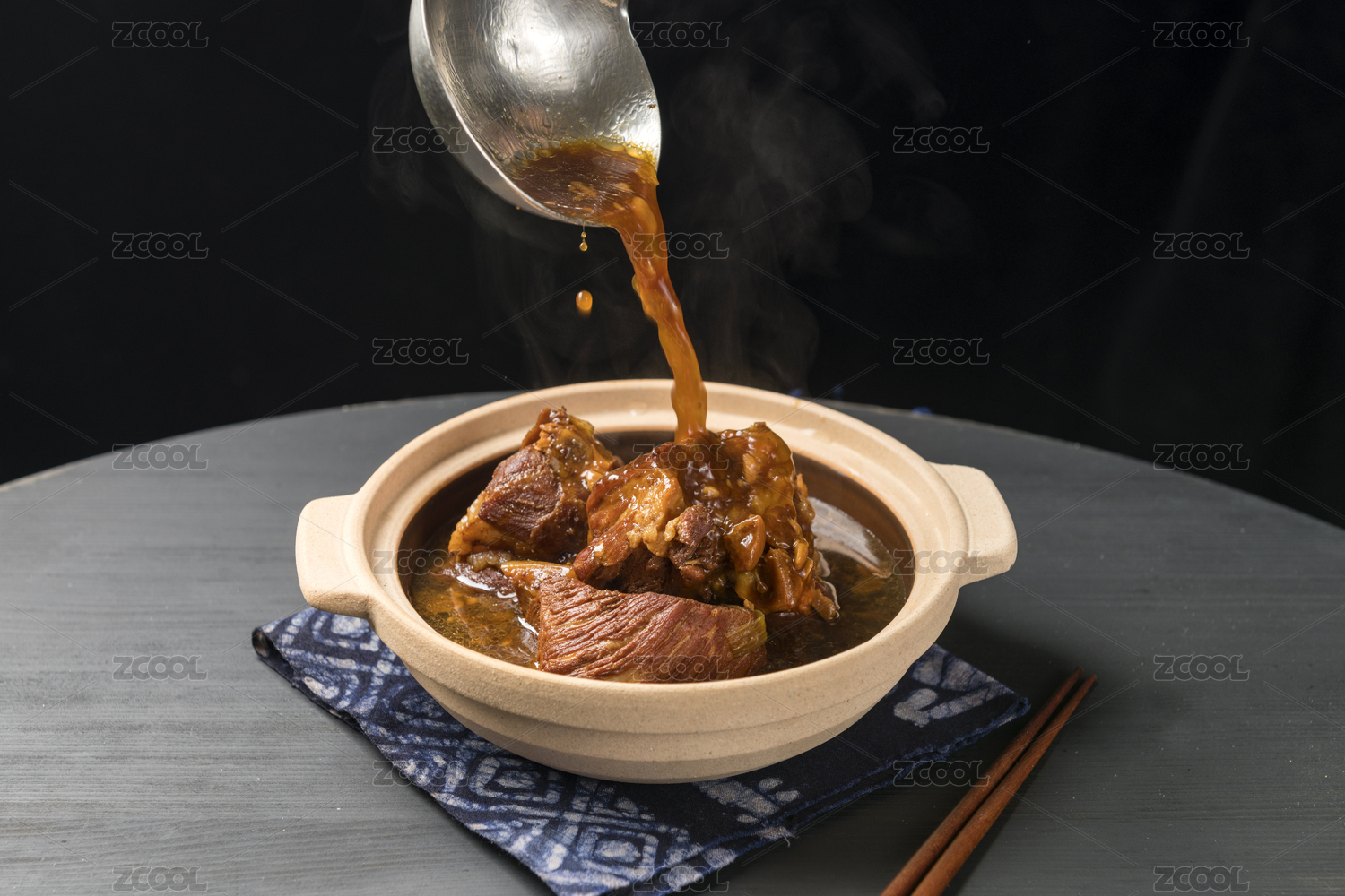 热气腾腾正在蜡烛加热的桂花叉烧煲