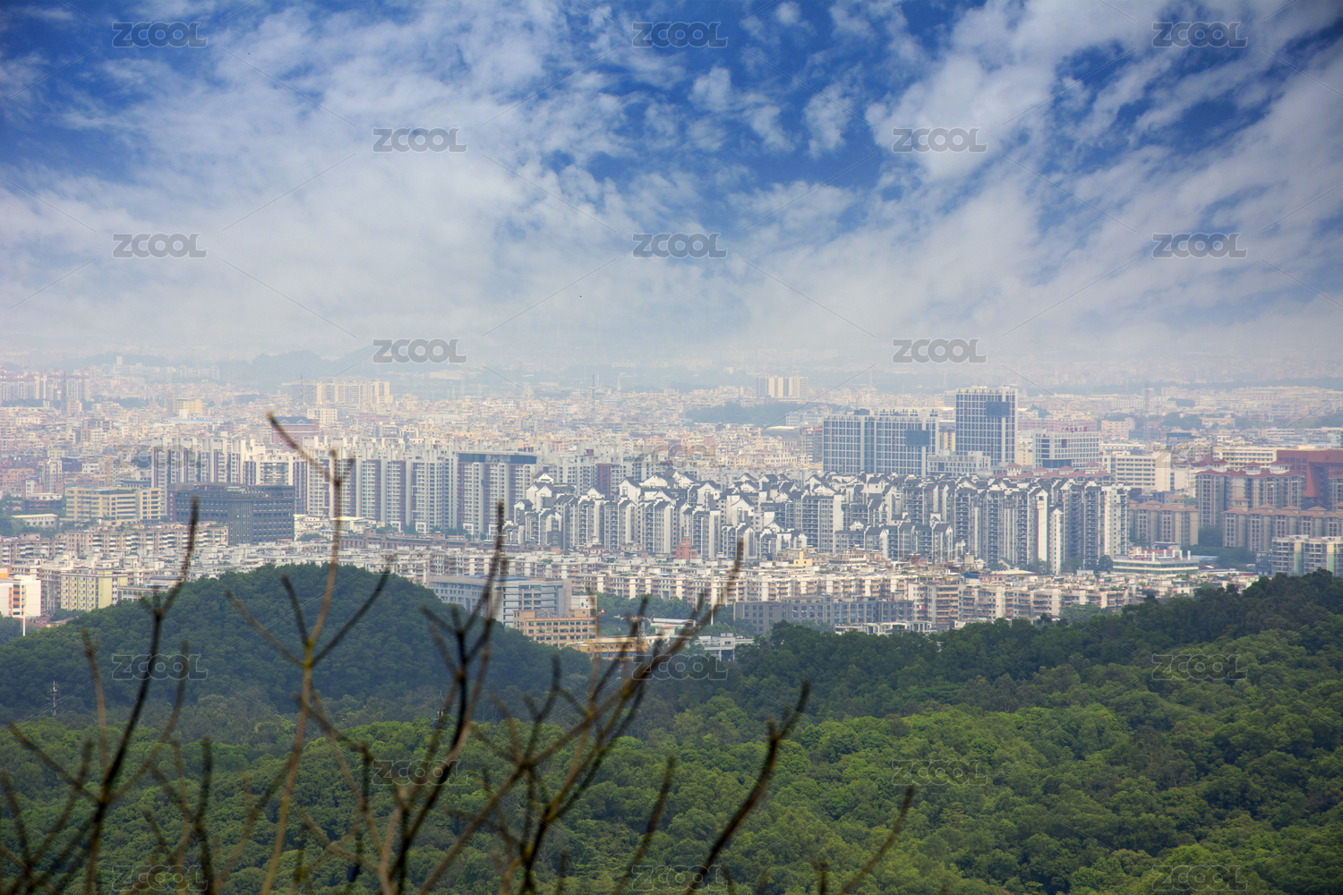 中国广州白云山风景区俯瞰天河城市建筑景观