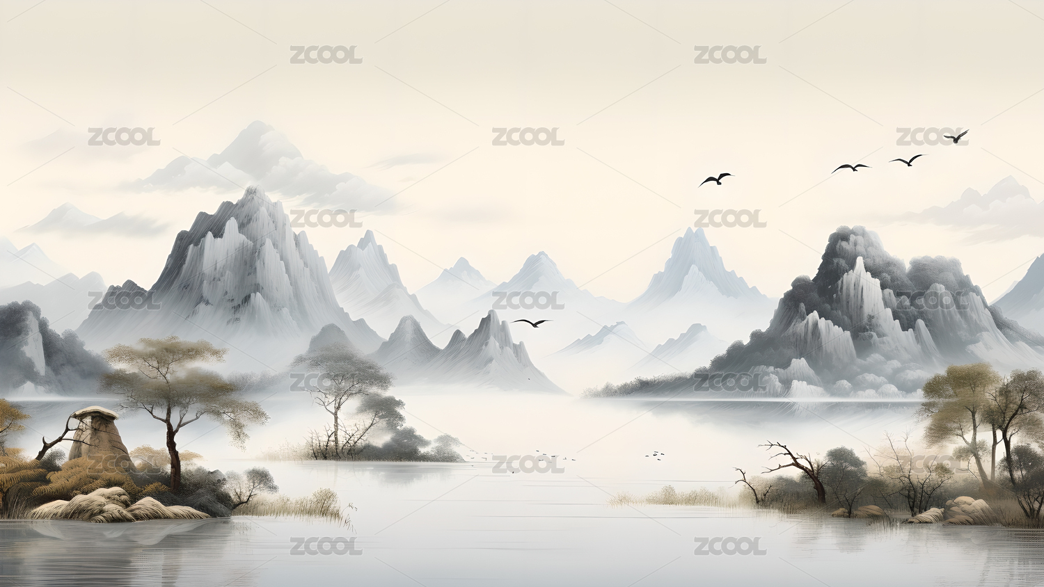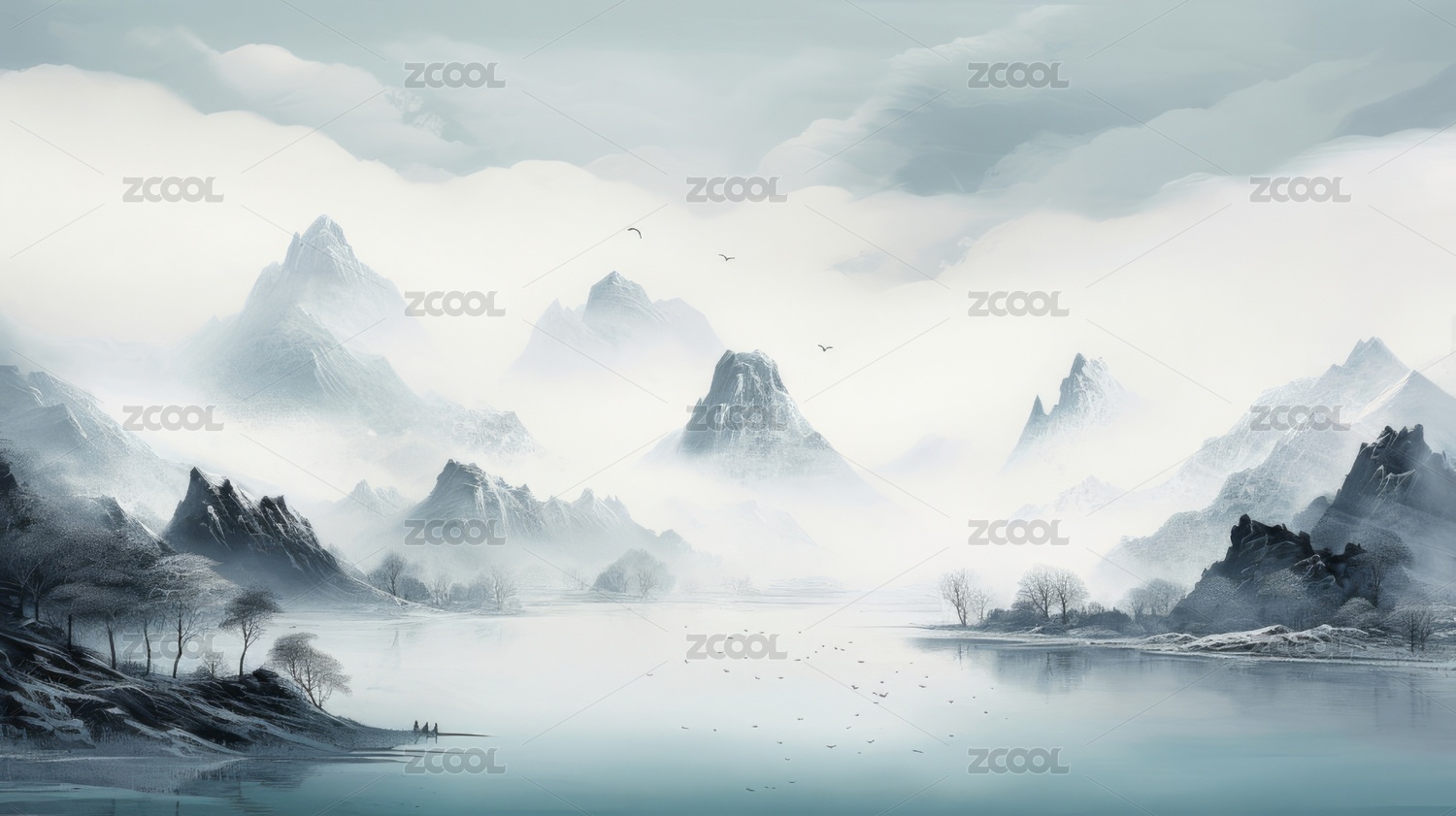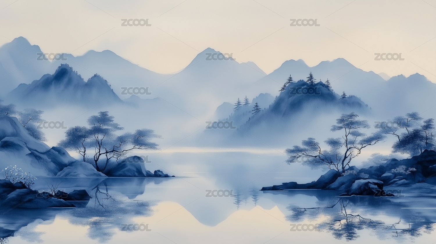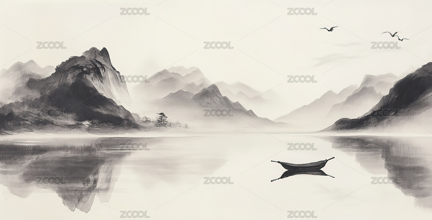 宁静写意中国风水墨山水画