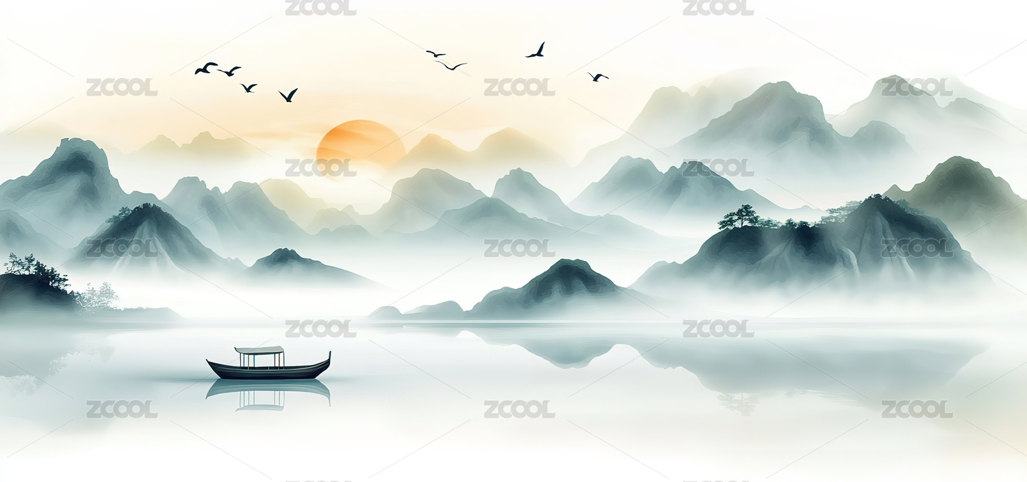 中式水墨风山水背景