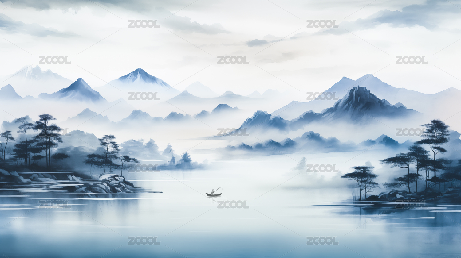 水墨风山水插画