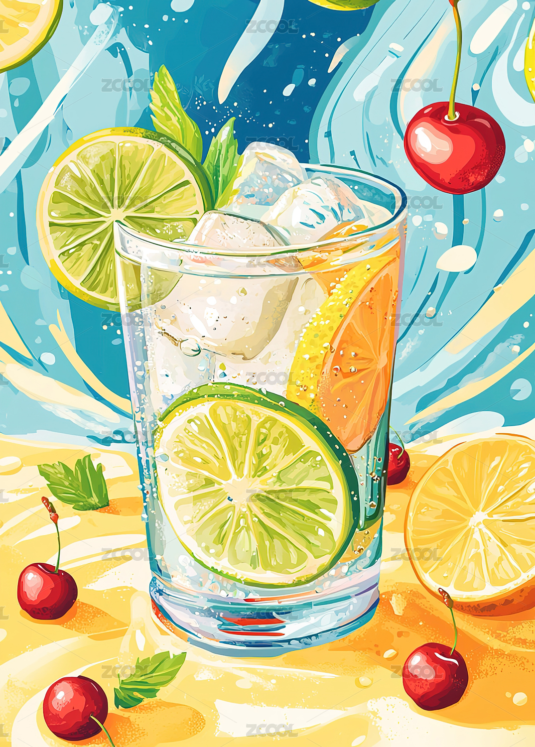 青柠切片饮品插画
