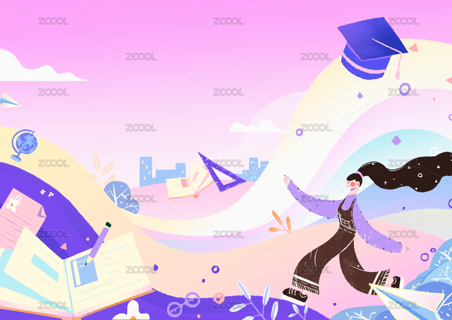 书籍,蓝色,学生,天空,考试,背影,文具,插画,卡通