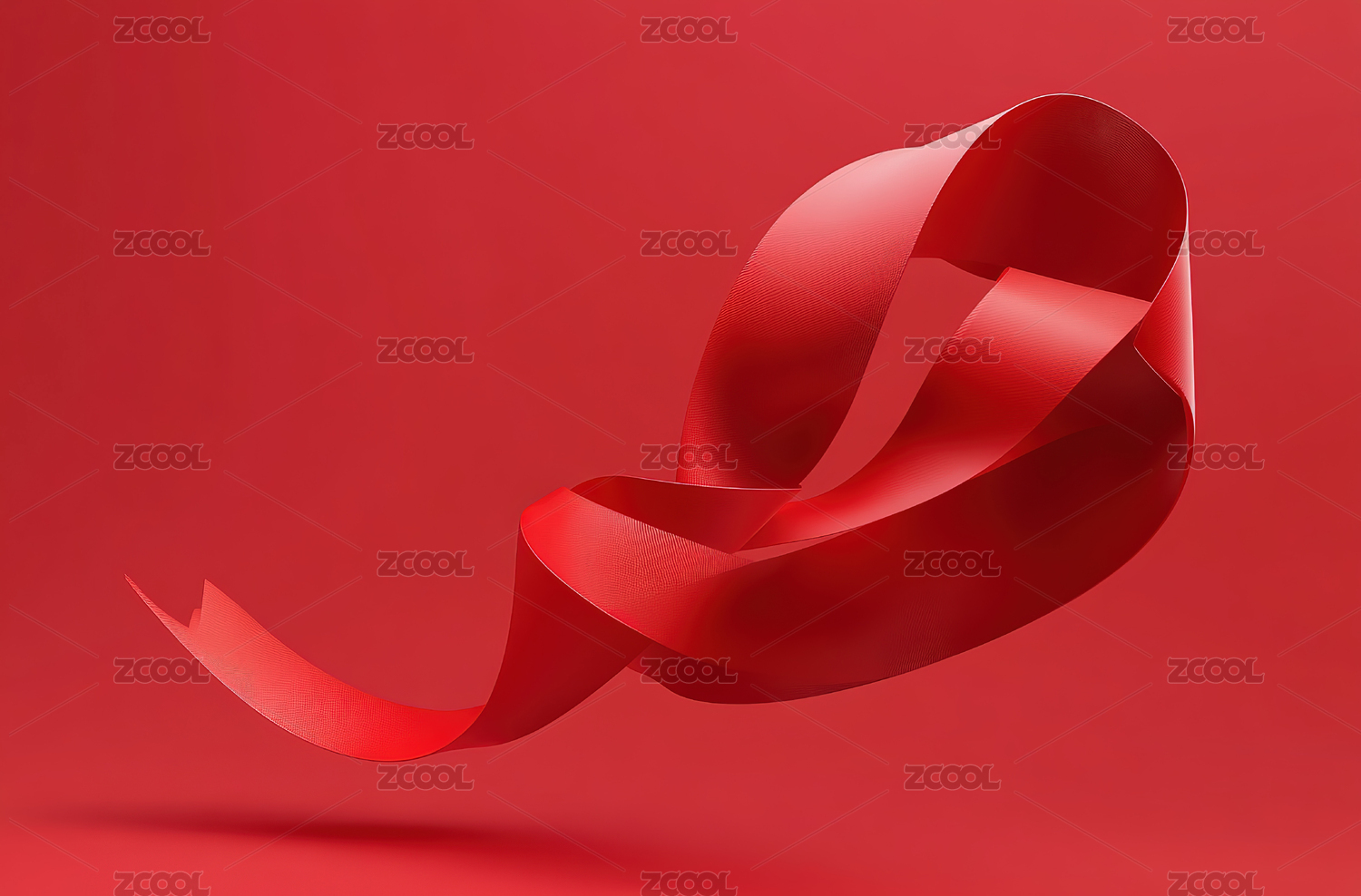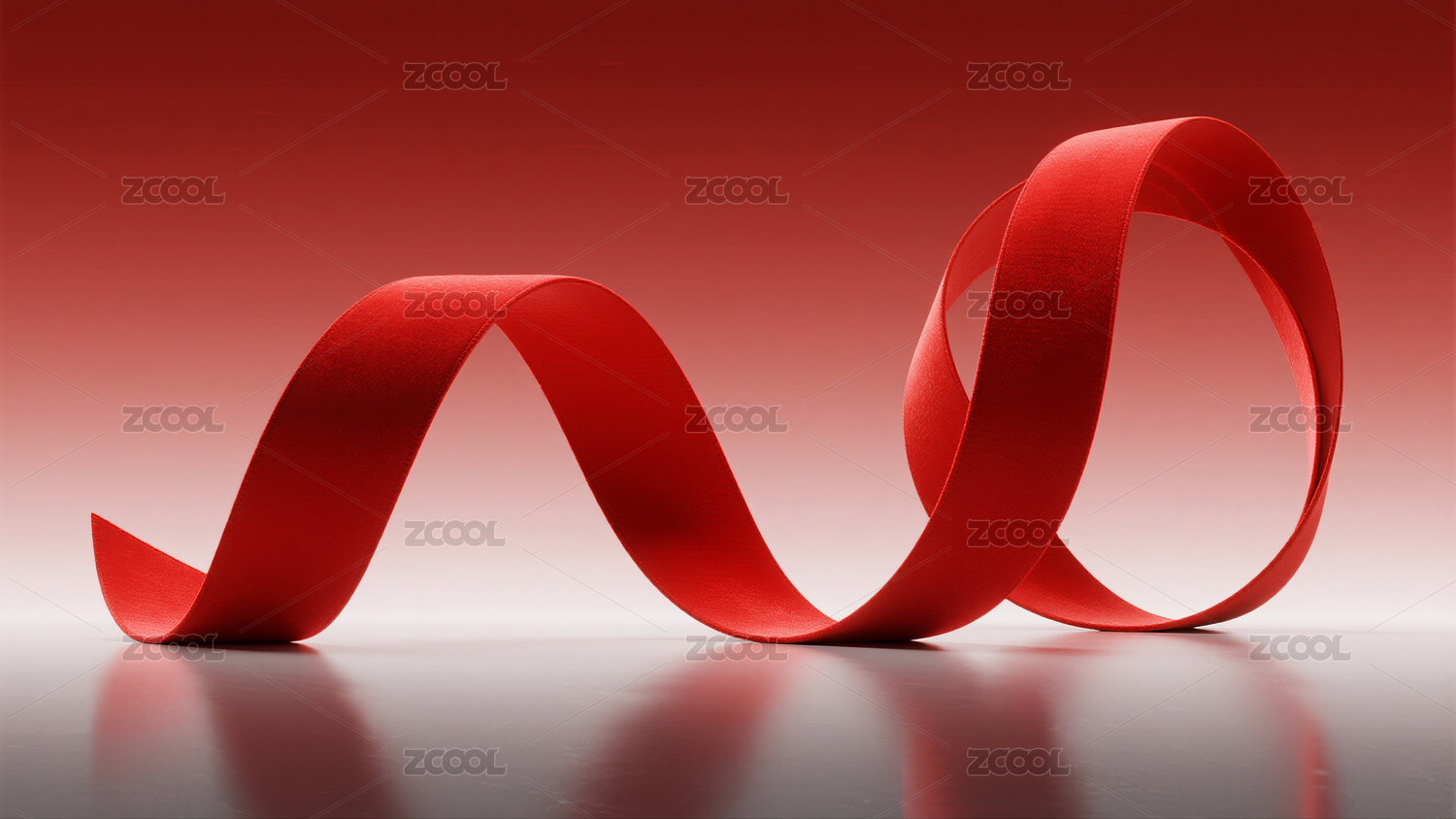 红色丝带在渐变背景前呈现波浪造型
