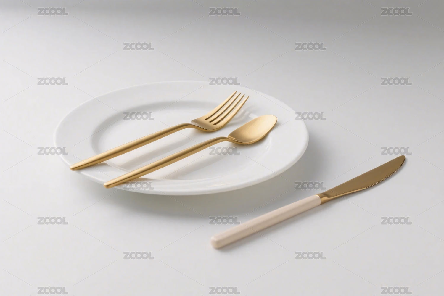 白色桌面白色碟子上西餐刀叉摆放的礼仪标准