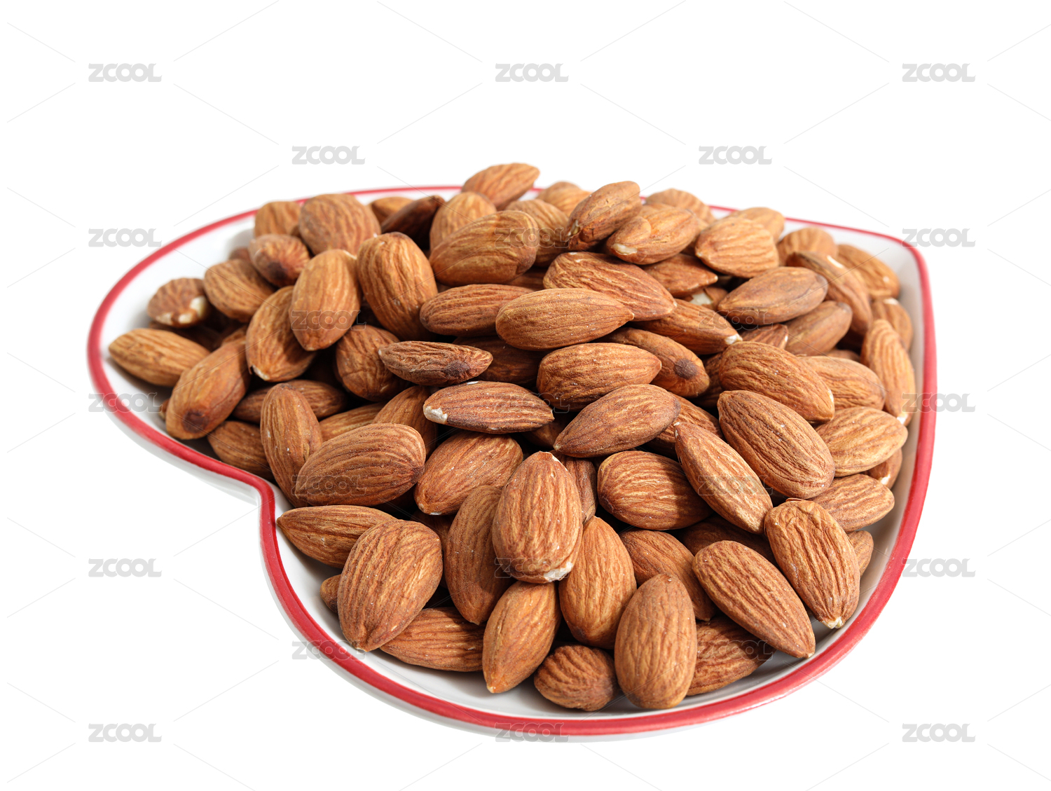 一盘子营养坚果巴达木仁杏仁特写的白底图