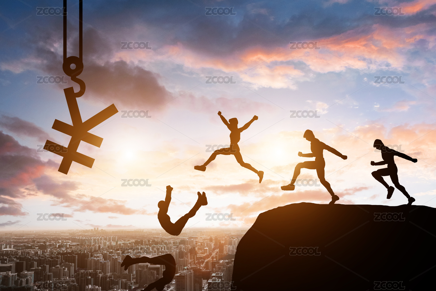 2020剪影人物跑跳过悬崖励志积极勇气概念
