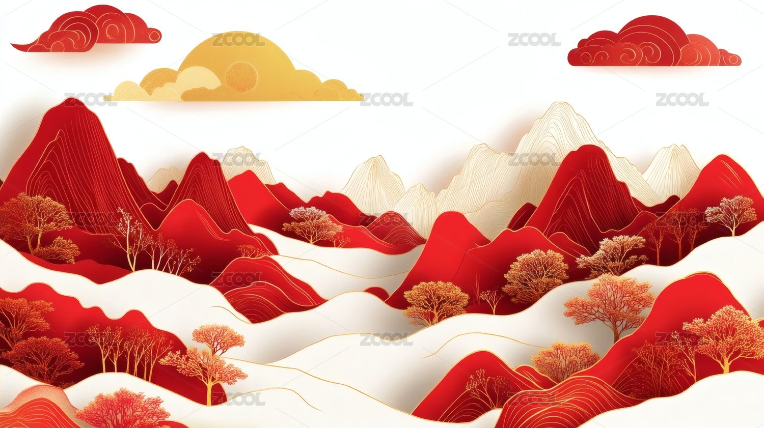 绿色山顶风景抽象艺术装饰画插画海报背景