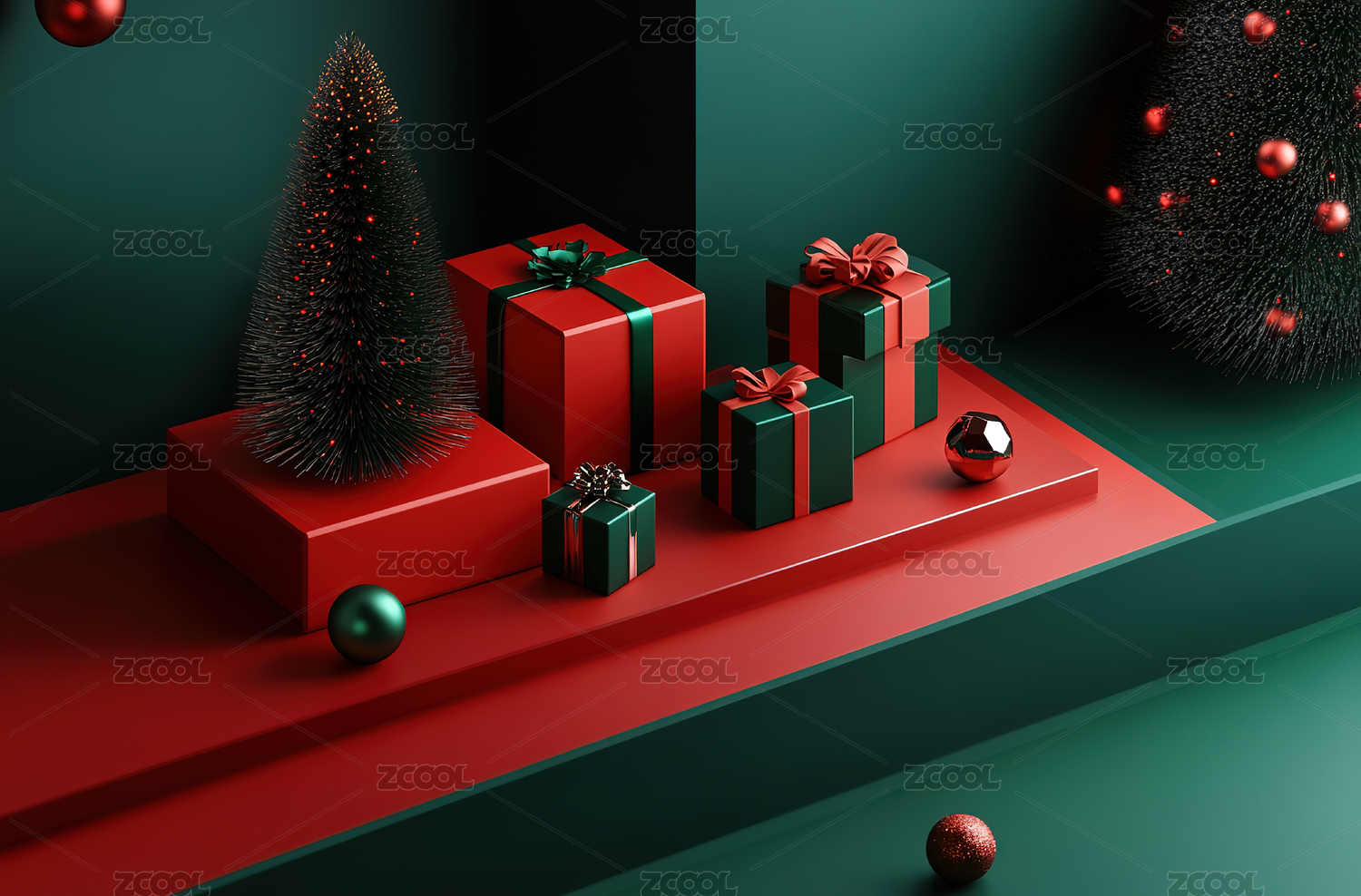 红色礼盒与金色装饰球