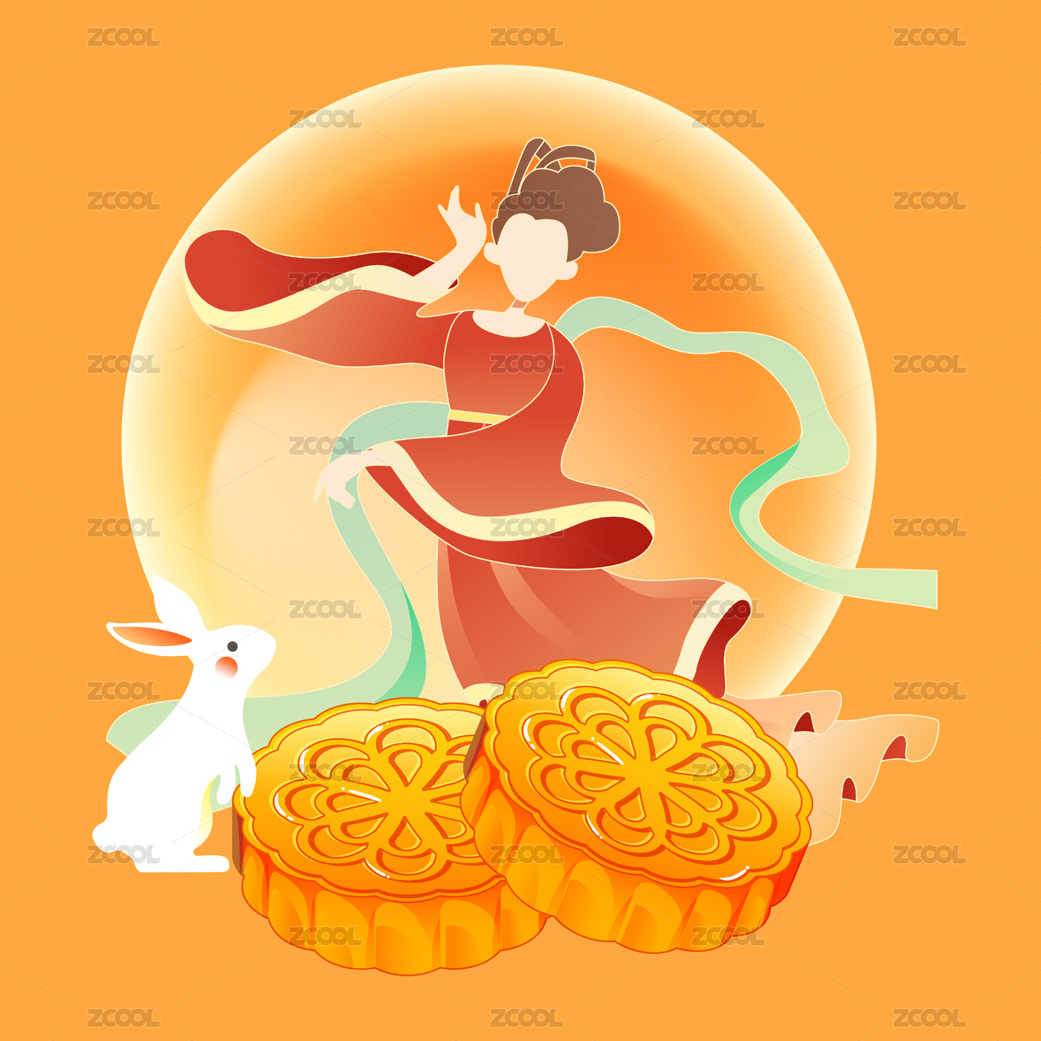 中秋节嫦娥兔子月亮桂花月饼等国风矢量插画
