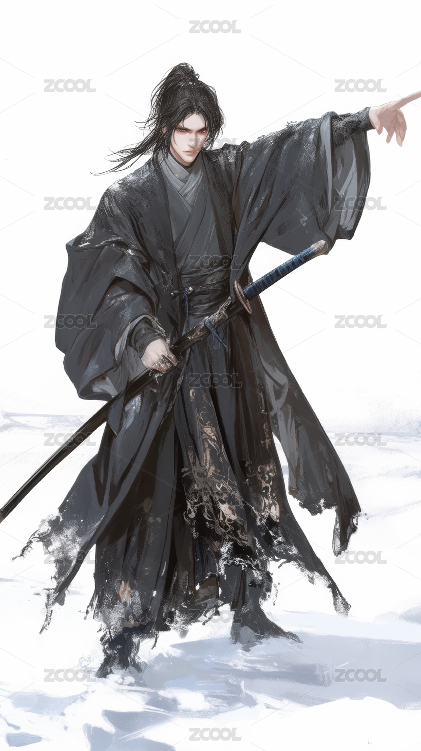 雪中黑衣剑客