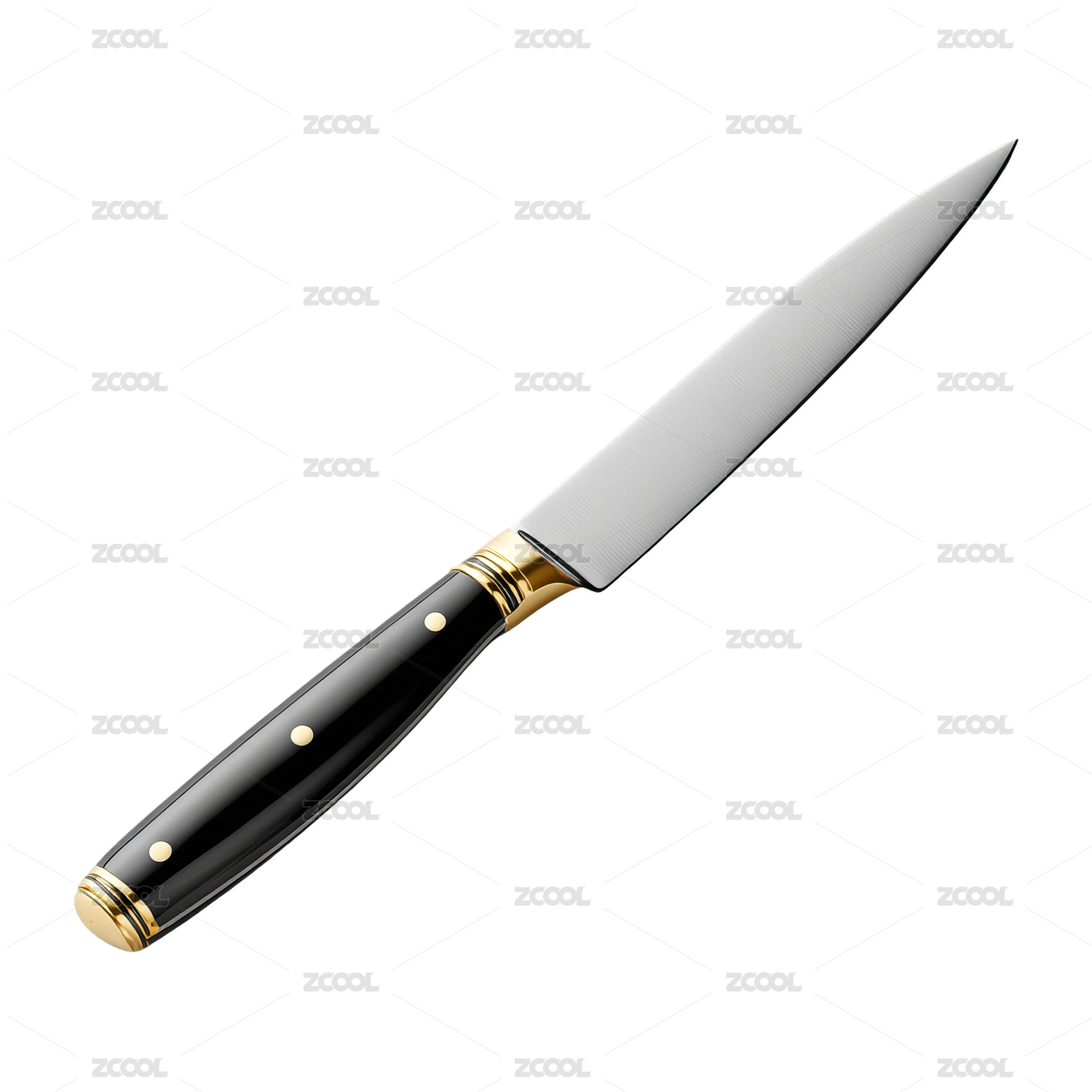 一把黑色手柄金色细节的锋利厨刀