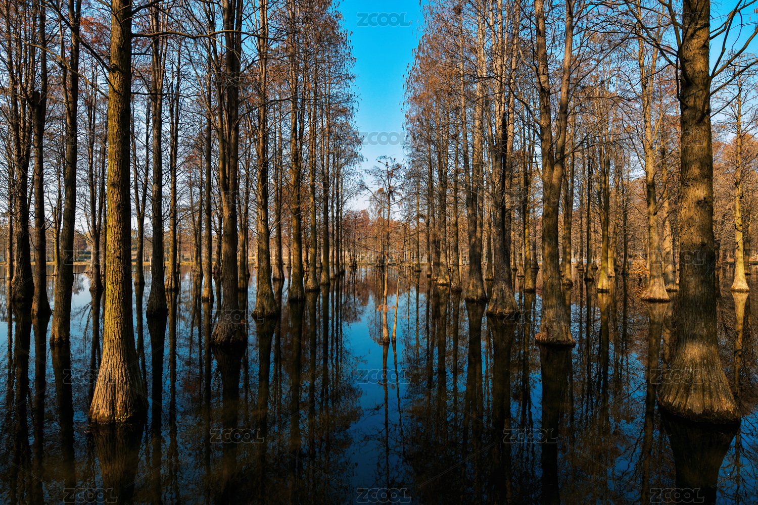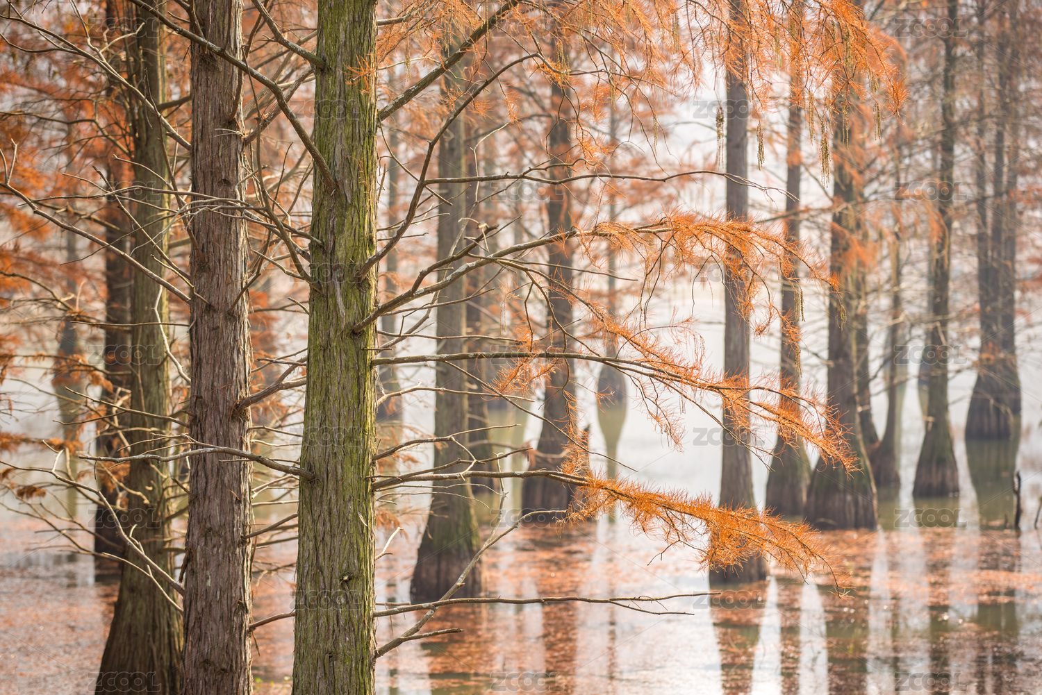 武汉涨渡湖湿地自然保护区水上森林杉树