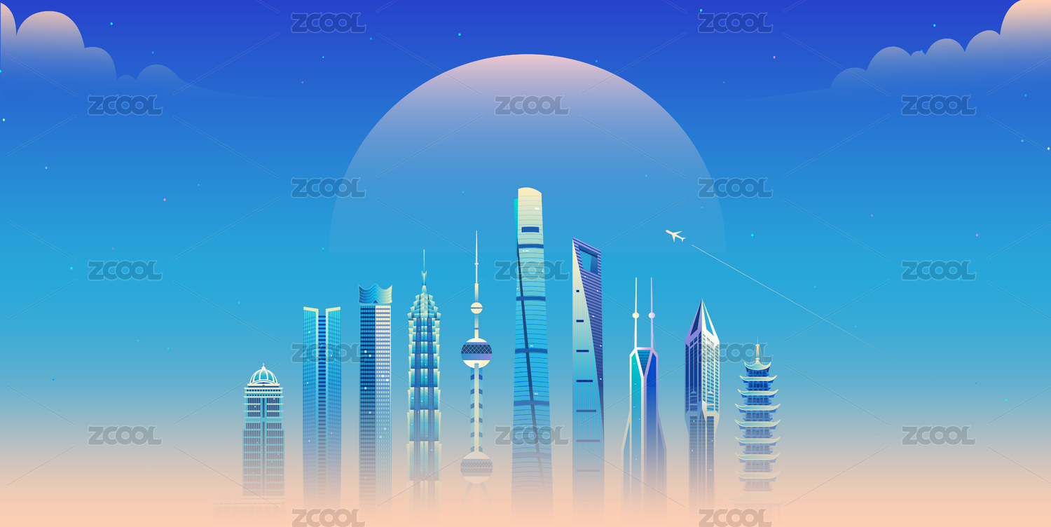 现代上海城市插画