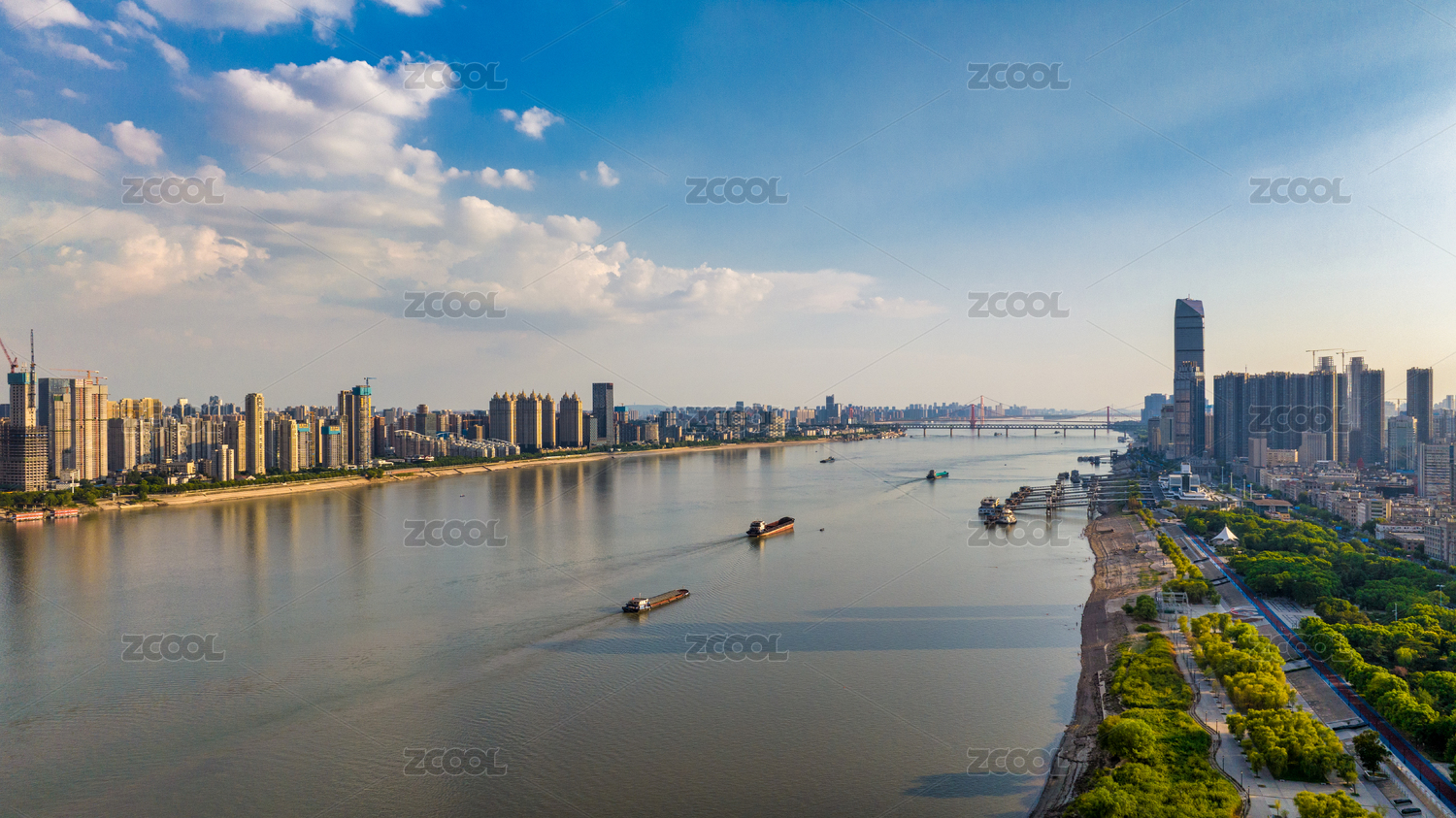 湖南省长沙市银盆岭湘江大桥航拍城市天际线