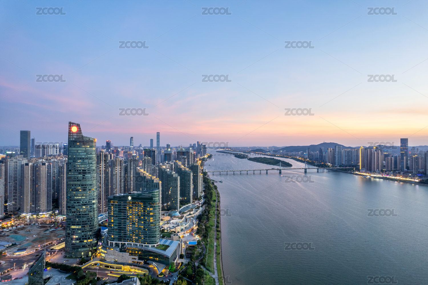 航拍,长沙风光,城市夜景,湘江两岸,摩天大楼,城市天际线,建筑外部,户外,都市风景,城市生活