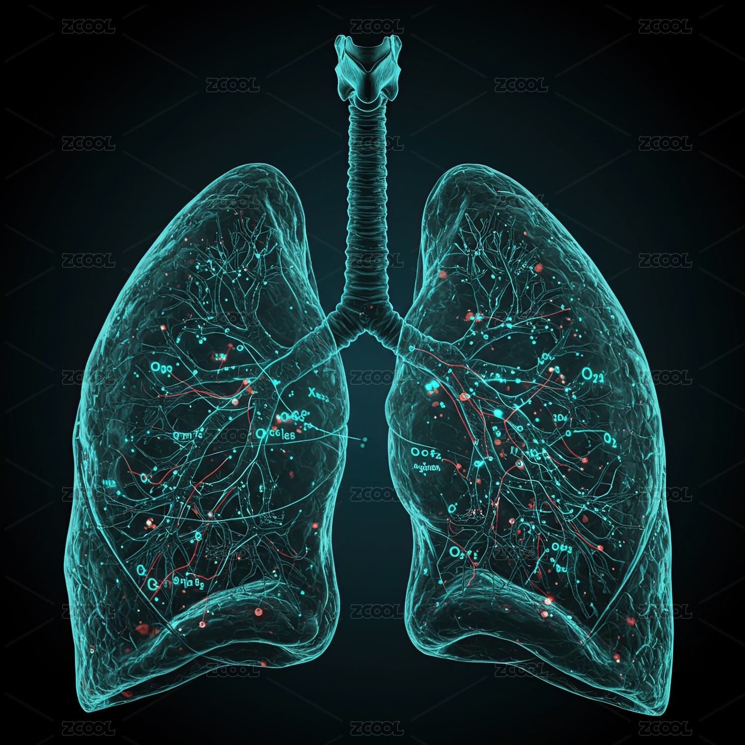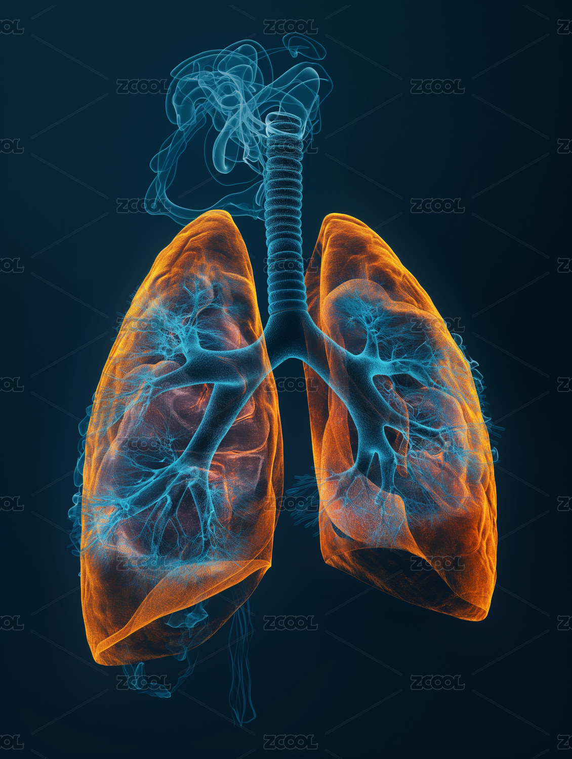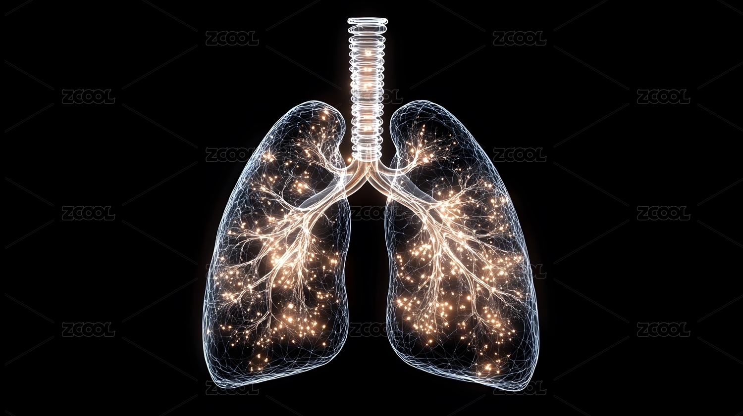 肺部,三维渲染,透明化,内部结构,气管,支气管,肺泡,医学图像,科技感,未来感
