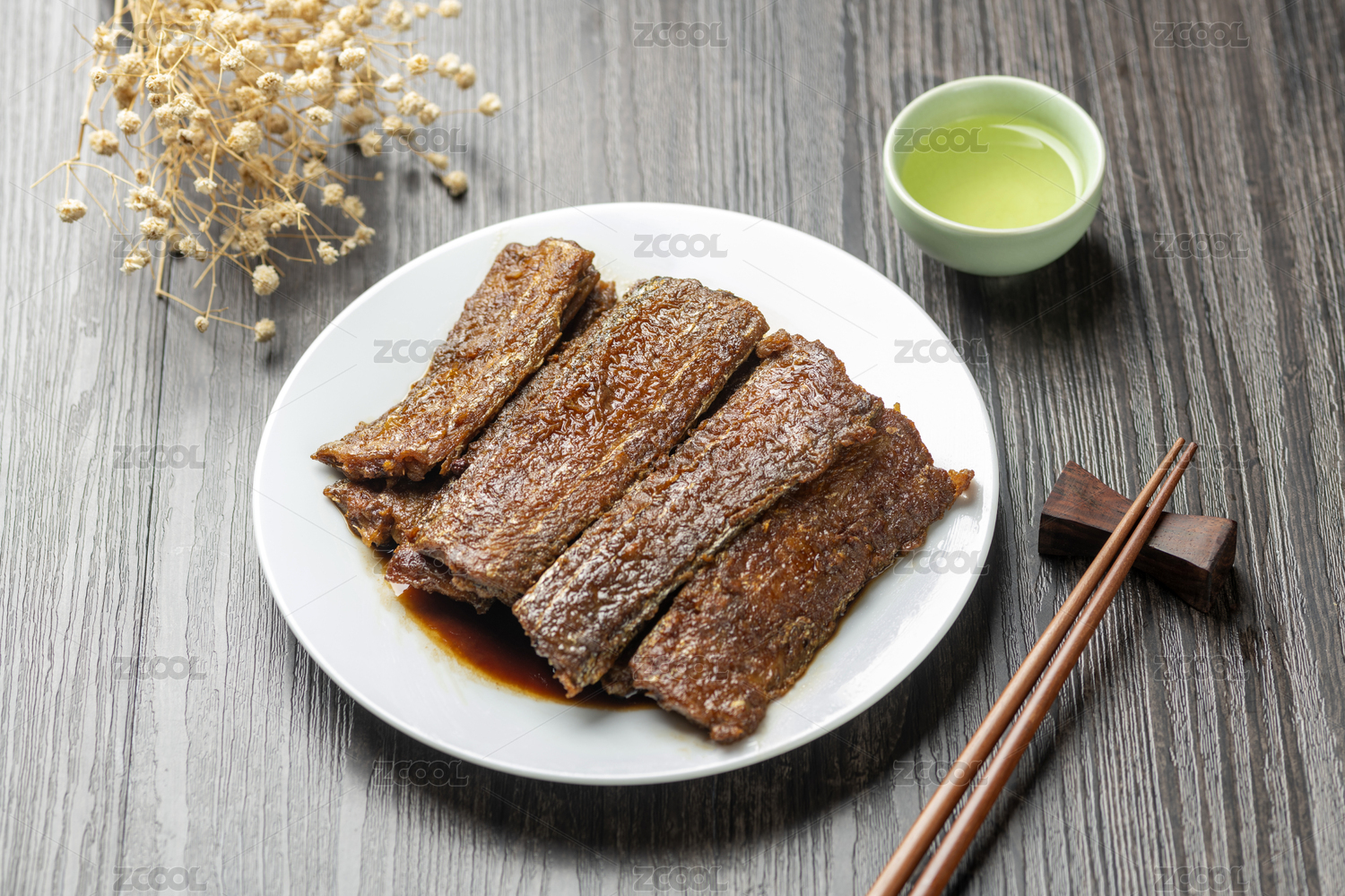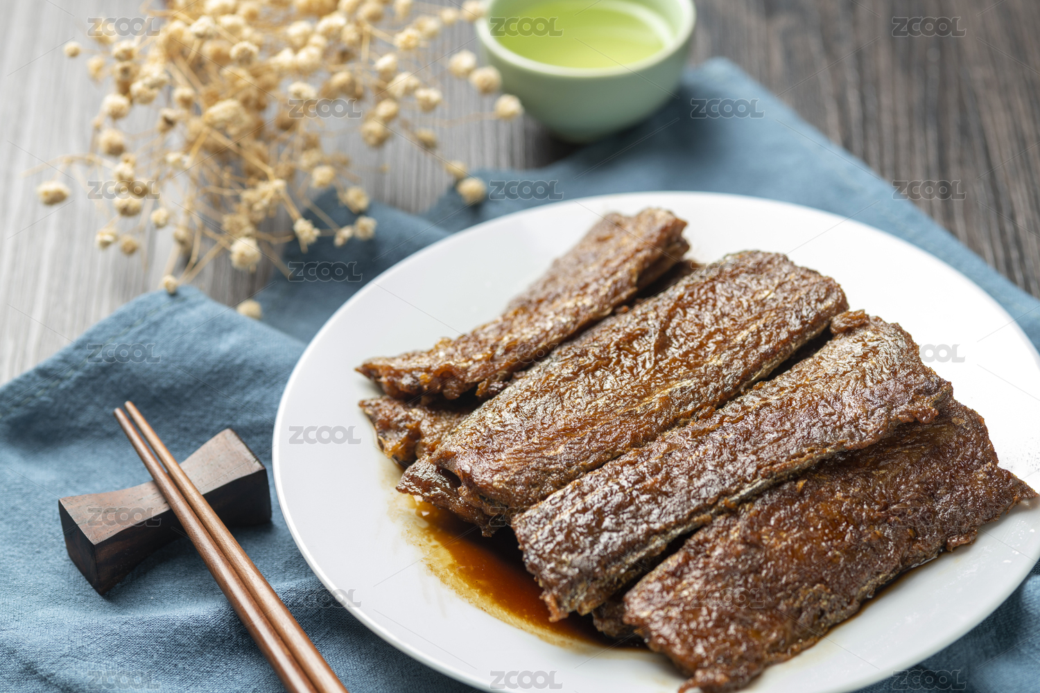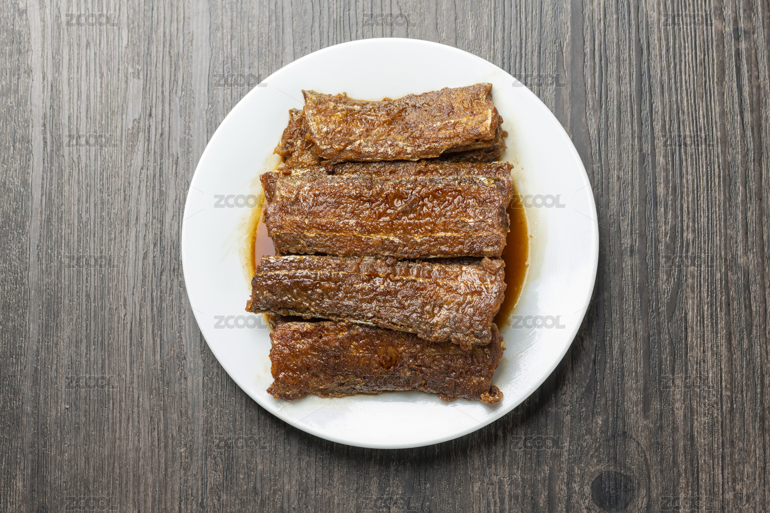 熬带鱼红烧带鱼摆放在木桌面上